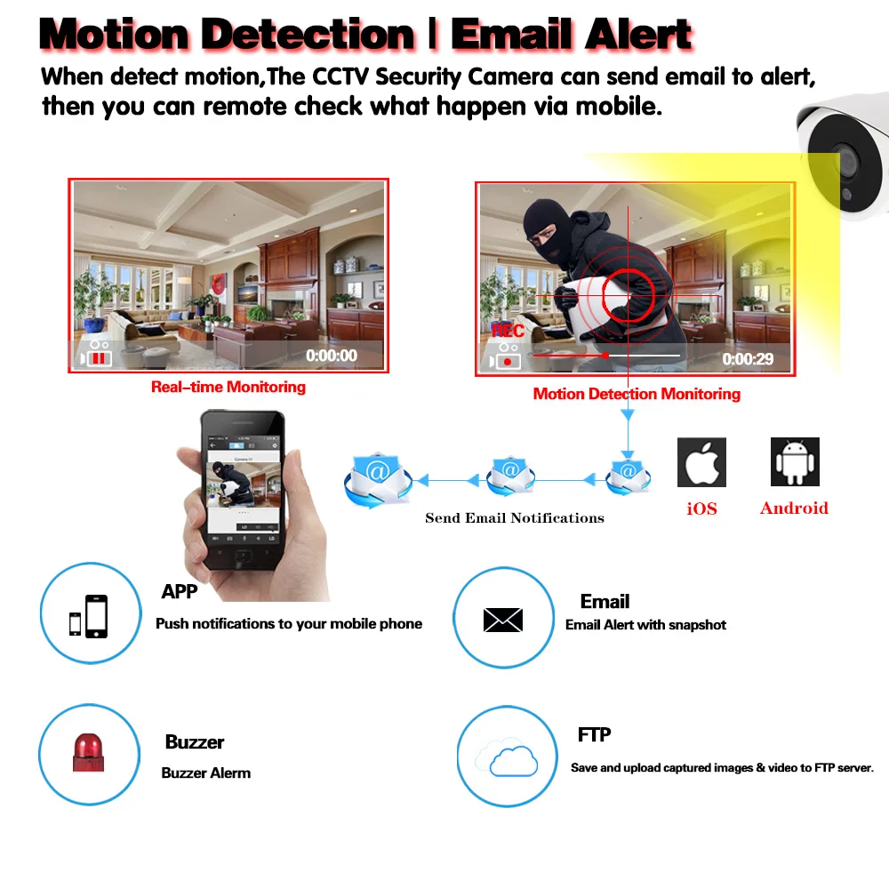 Можно настроить область, которую вы хотите контролировать, когда она срабатывает, она отправит сообщение на вашу электронную почту, вы можете получить информацию из первых рук, независимо от того, когда и где вы находитесь.