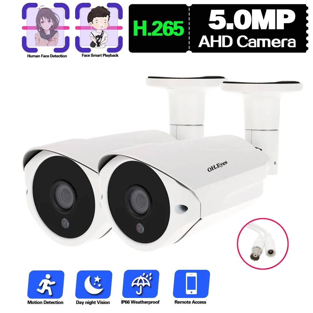 Цилиндрическая камера видеонаблюдения, AHD, 5 МП, водонепроницаемая, ИК, ночное видение, 2 МП