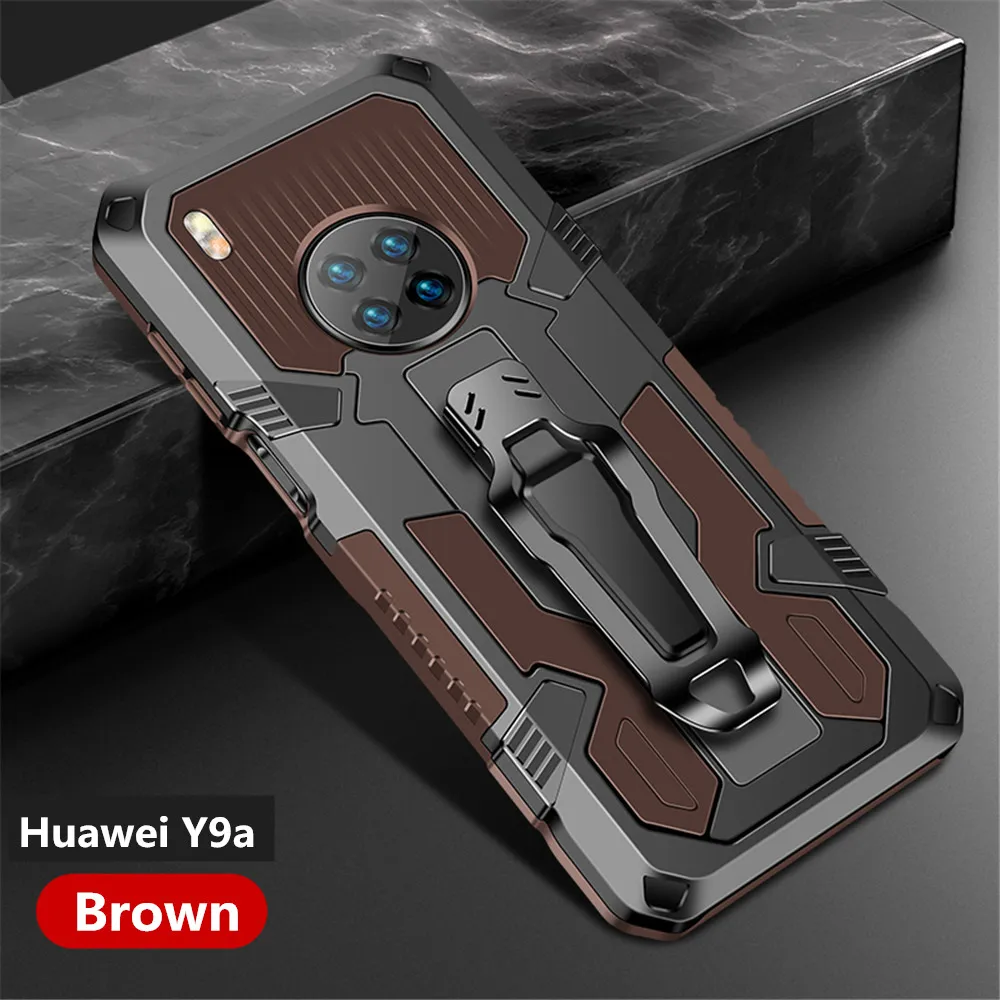 Металлическая задняя крышка с зажимом для Huawei Y9a, Y7a, Y9, Y5, Y6 Pro, Y7 Prime 2019, противоударный бронированный чехол для Huawei Nova 7i, 5t, 6 SE, Y8p, y8s, Y5p