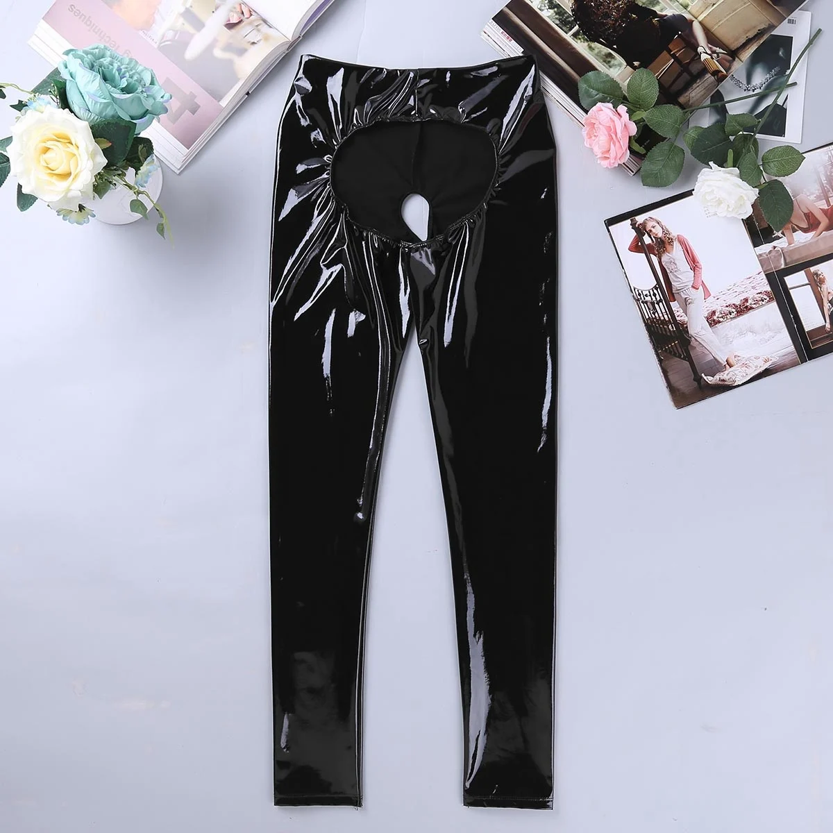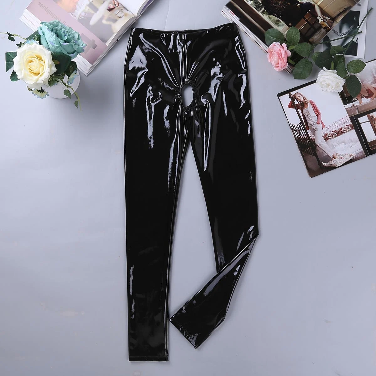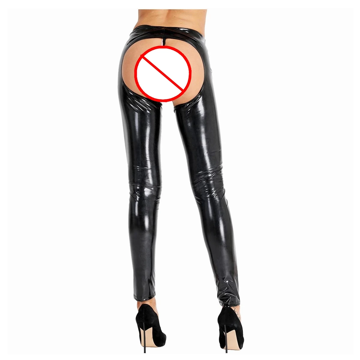 Одежда для дома латекс женское белье из лакированной кожи с открытым костюм промежности Клубная одежда обтягивающие эластичные колготки порно леггинсы брюки для девочек