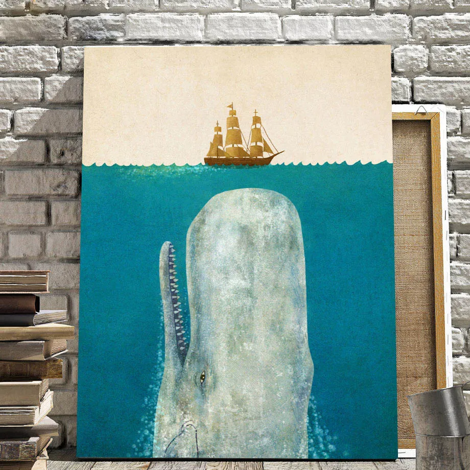 Плакаты и принты в скандинавском стиле ретро, настенная Картина на холсте с морским пейзажем, морским дайвером, китами, украшение для гостиной