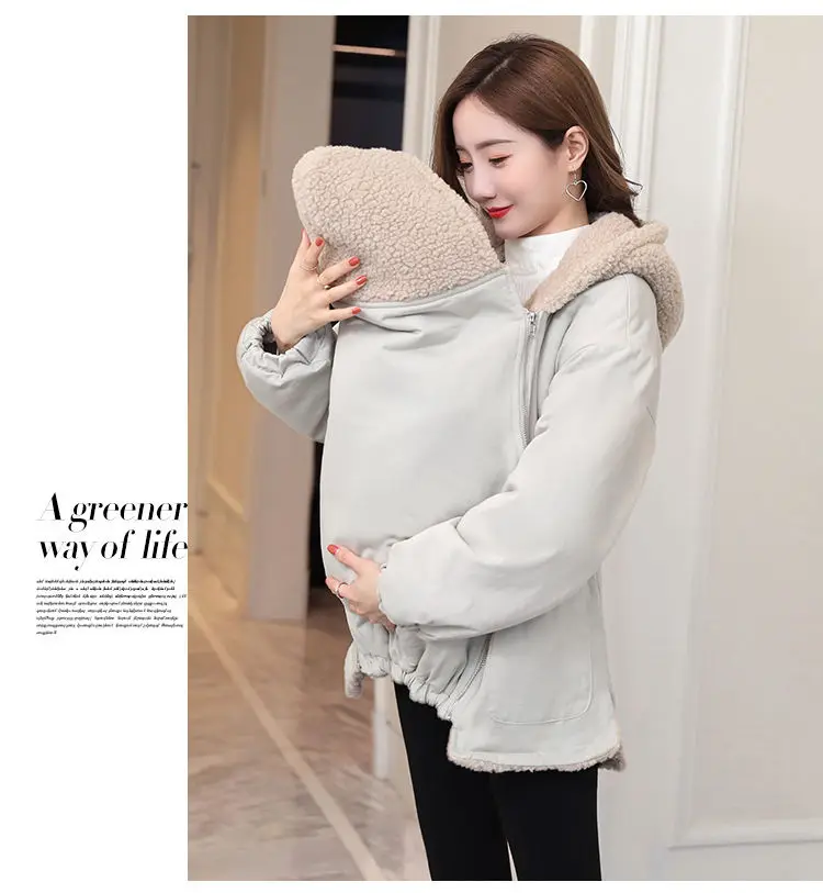 Зимнее пальто для беременных с длинными рукавами куртки-кенгуру для беременных свободные модные бархатные куртки-переноски с капюшоном для беременных