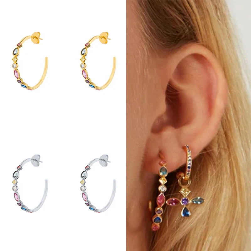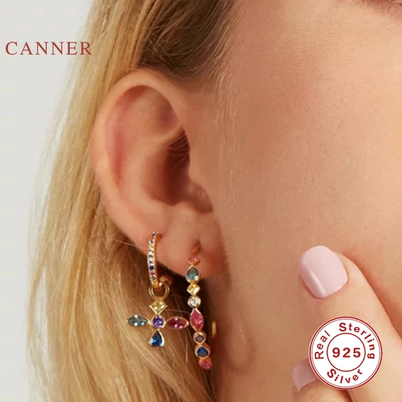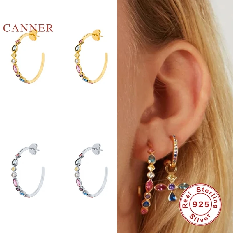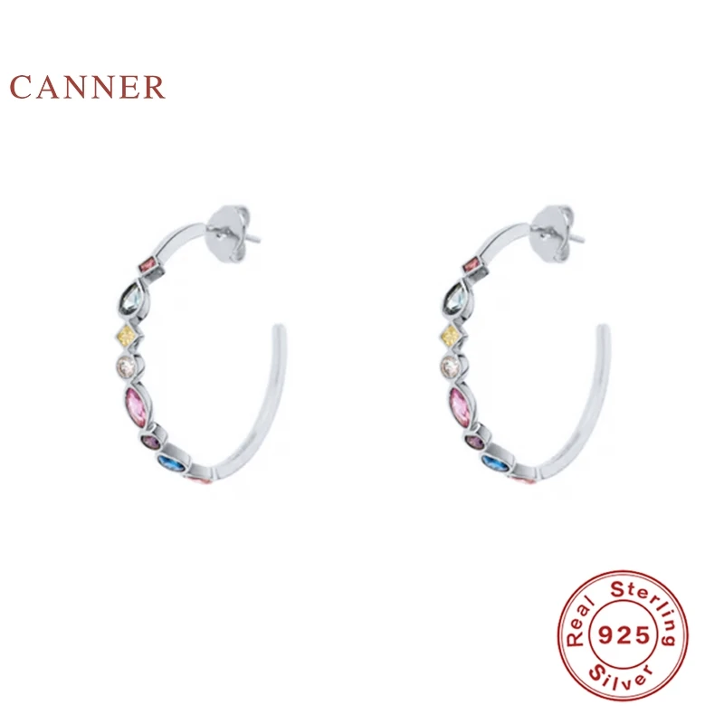 CANNER геометрические простые серьги для женщин c-тип красочные циркониевые 925 пробы Серебряный пирсинг серьги