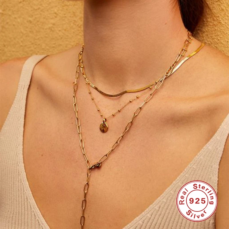 Женское колье в стиле бохо CANNER, ожерелье из стерлингового серебра 925 пробы с круглыми бусинами золотого цвета, серебряные ожерелья до ключиц, ювелирные изделия 925