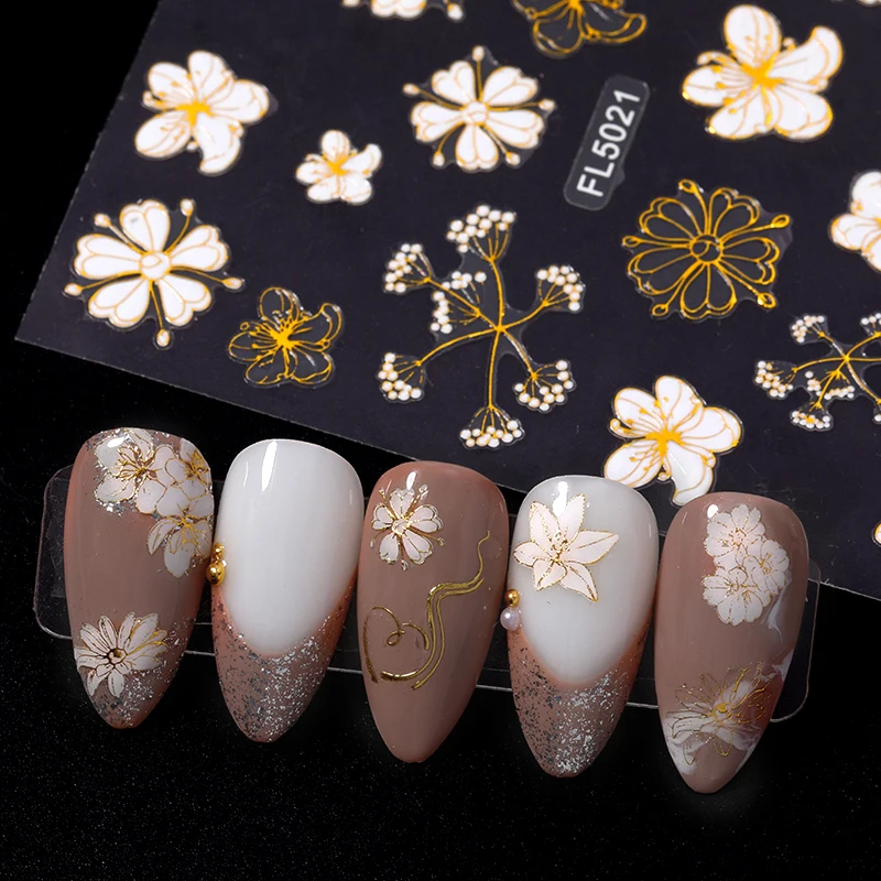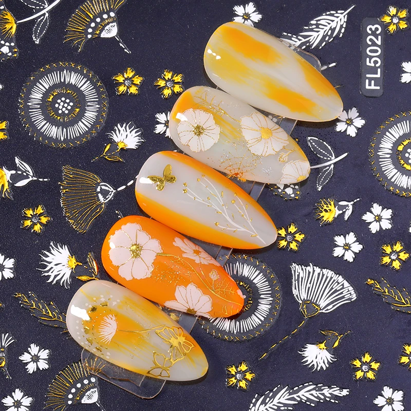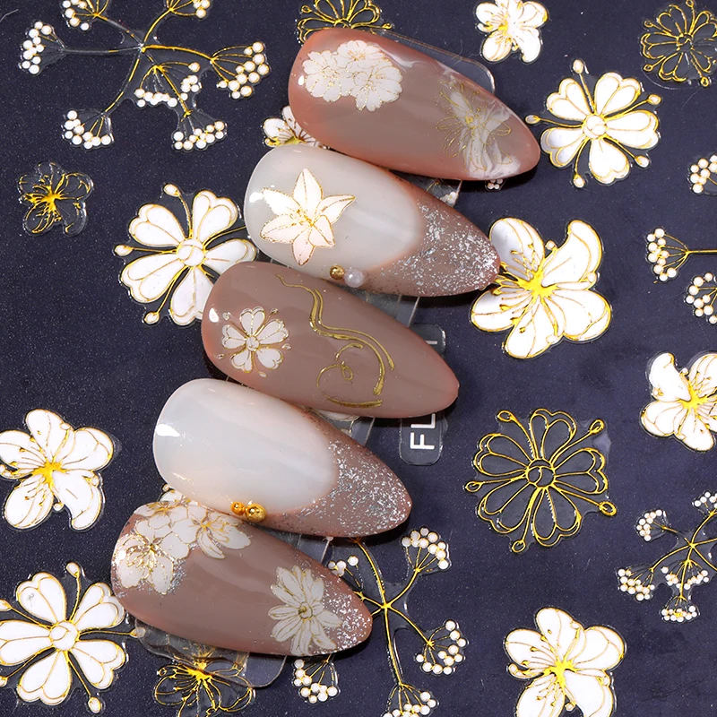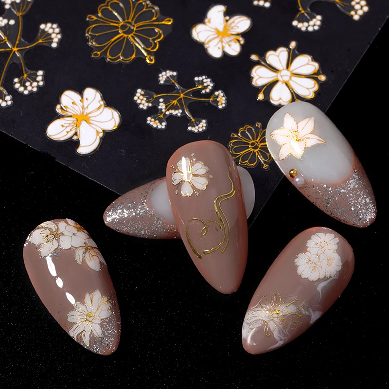 Переводные 3D-Наклейки для ногтей, 1 лист, золотистые, белые, весенне-летние, с цветами, бабочками