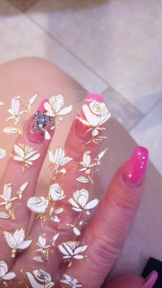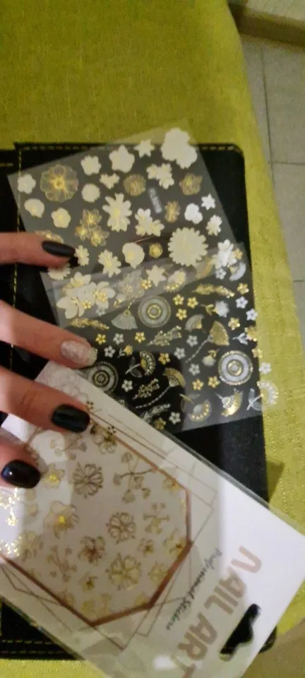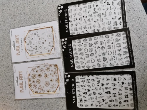Наклейки красивые,очень смотрятся ,хорошо отделяются от основы и прочно держатся на ногтях.