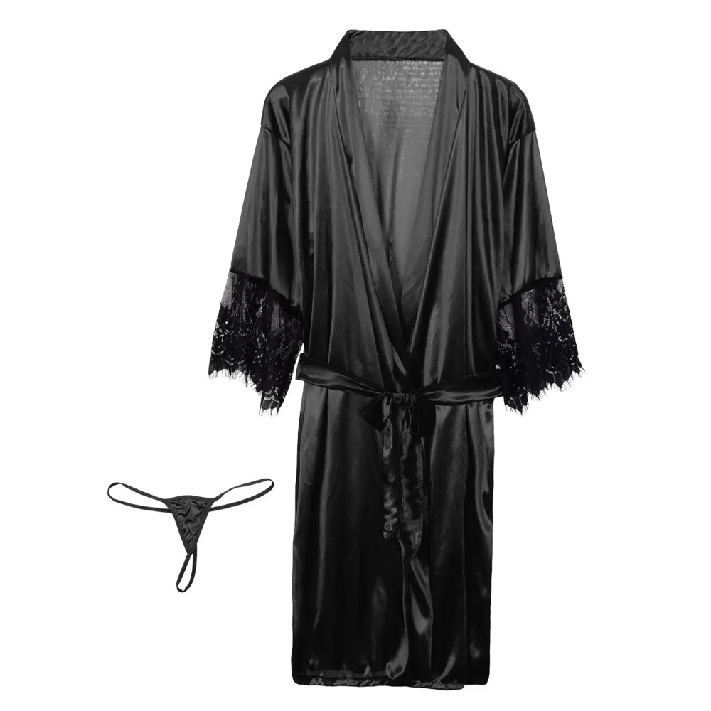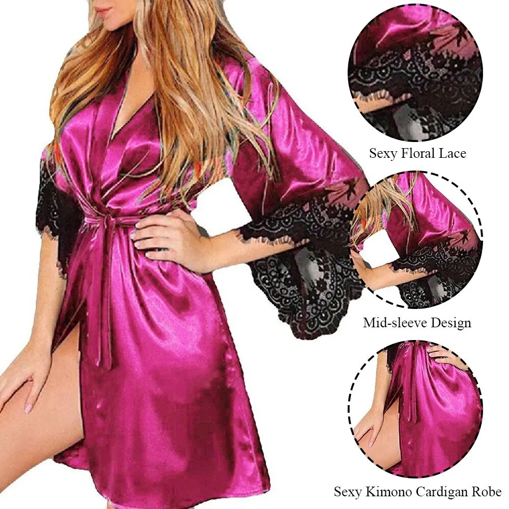 Сексуальные кружевные Сатиновые пижамы Для женщин женские Детское Белье для сна белье ночные рубашки с принтом в стиле пэчворк с принтом Ночная рубашка на шнуровке сексуальная ночная рубашка Домашняя одежда размера плюс халат
