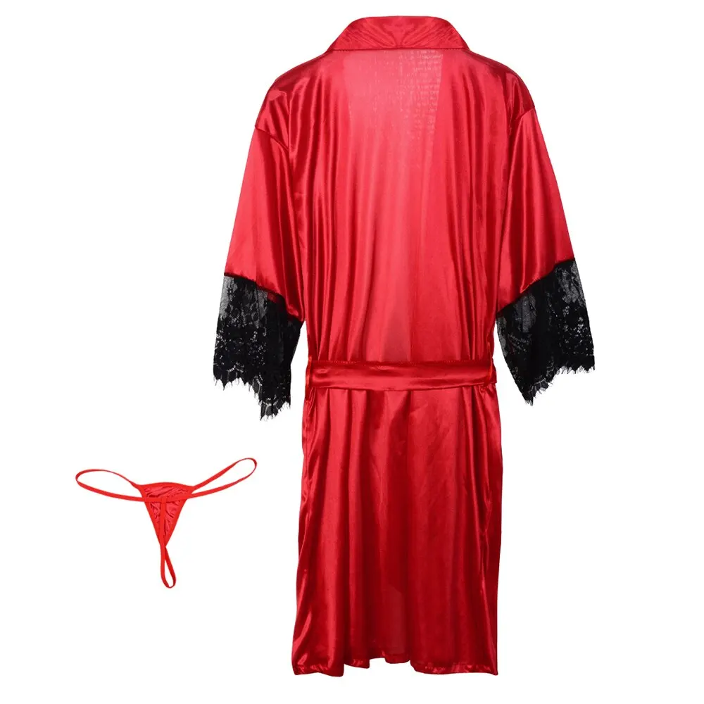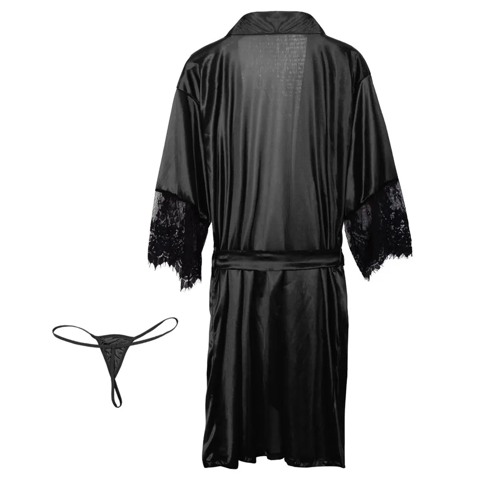 Женское пикантное длинное кимоно, кружевной банный халат, нижнее бе...