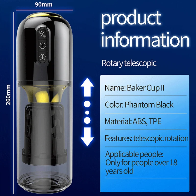 Характеристики: умное телескопическое интеллектуальное вращение голосовое взаимодействие Упаковочный лист: 1. Чашка для мастурбации 2. Присоска 3. Зарядный кабель 4. Руководство по эксплуатации