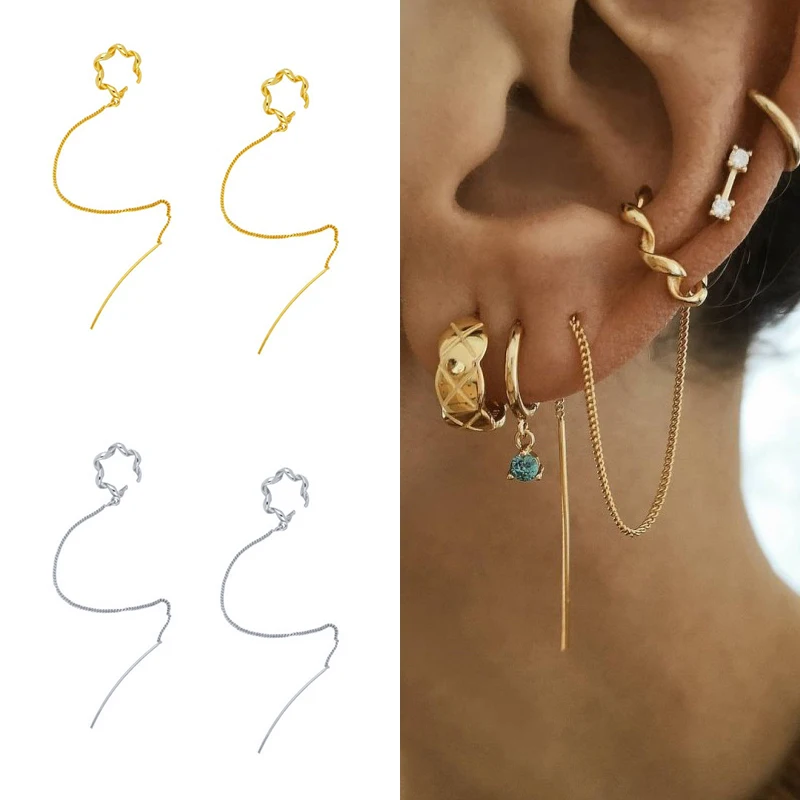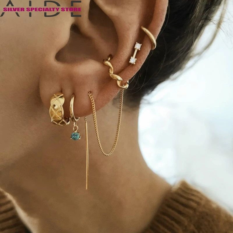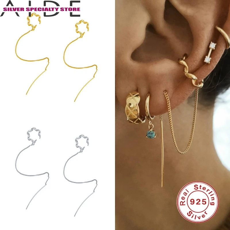 Женские серьги-гвоздики из серебра 925 пробы, на цепочке