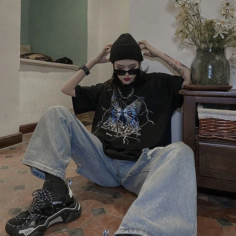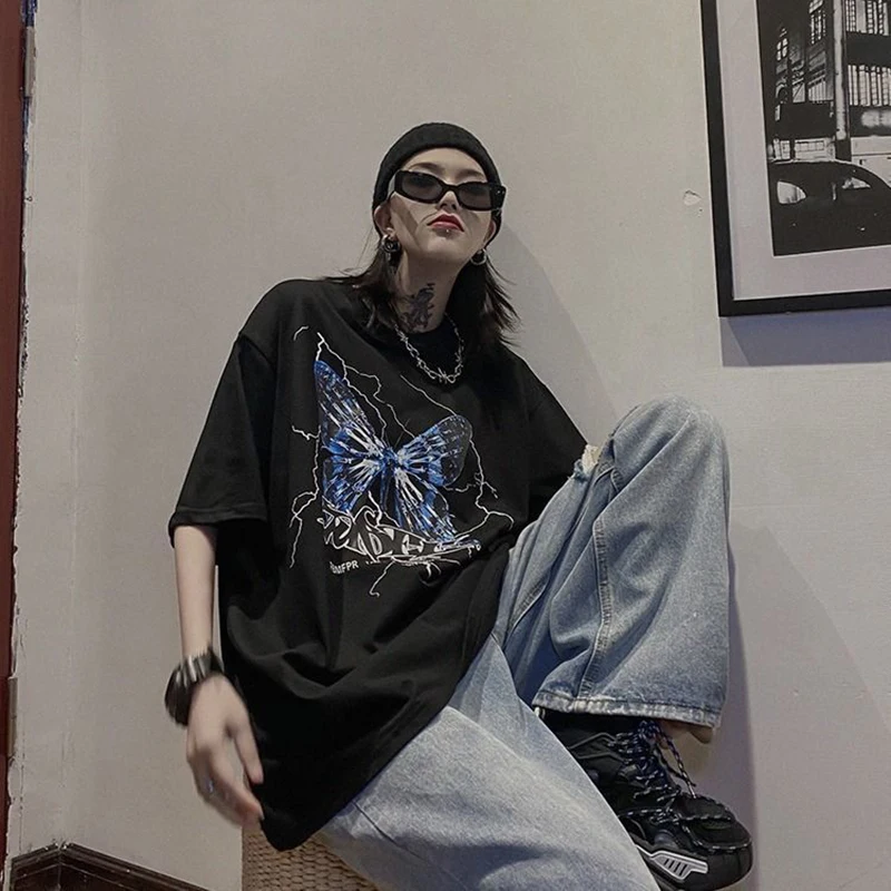 Футболка женская хлопковая, с принтом бабочек, y2k, в стиле Харадзюку, большого размера, винтажная, в Корейском стиле, женские футболки