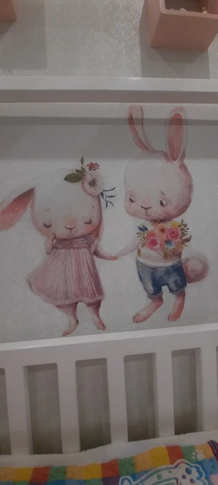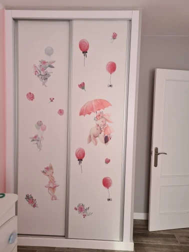 Клеить большие куски лучше вдвоем, так как очень тонкая наклейка, быстро прилипает к стене! На белых стенах смотрится отлично! Отклеиваются, к сожалению, с краской, но я это ожидала, поэтому бал не снизила! Детская комната заиграла новыми красками!