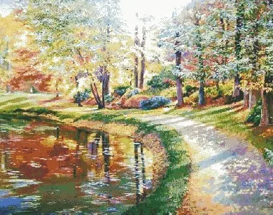 Набор для вышивки крестиком из разноцветной ткани в пасторальном стиле, красочный лес, солнечный день, лесная тропа, озеро, река, страна