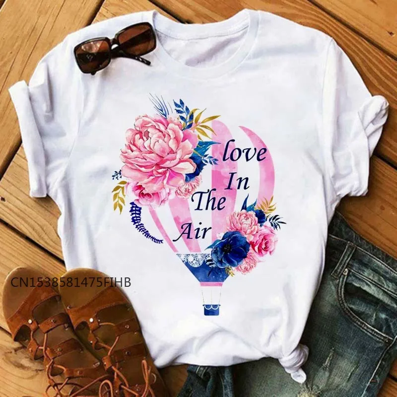 Погода горячего воздуха с принтом в виде воздушного шара и Женская обувь, Большие размеры футболка для женщин футболки для девочек Летняя футболка с короткими рукавами для мальчиков премиум топы Женская Базовая футболка