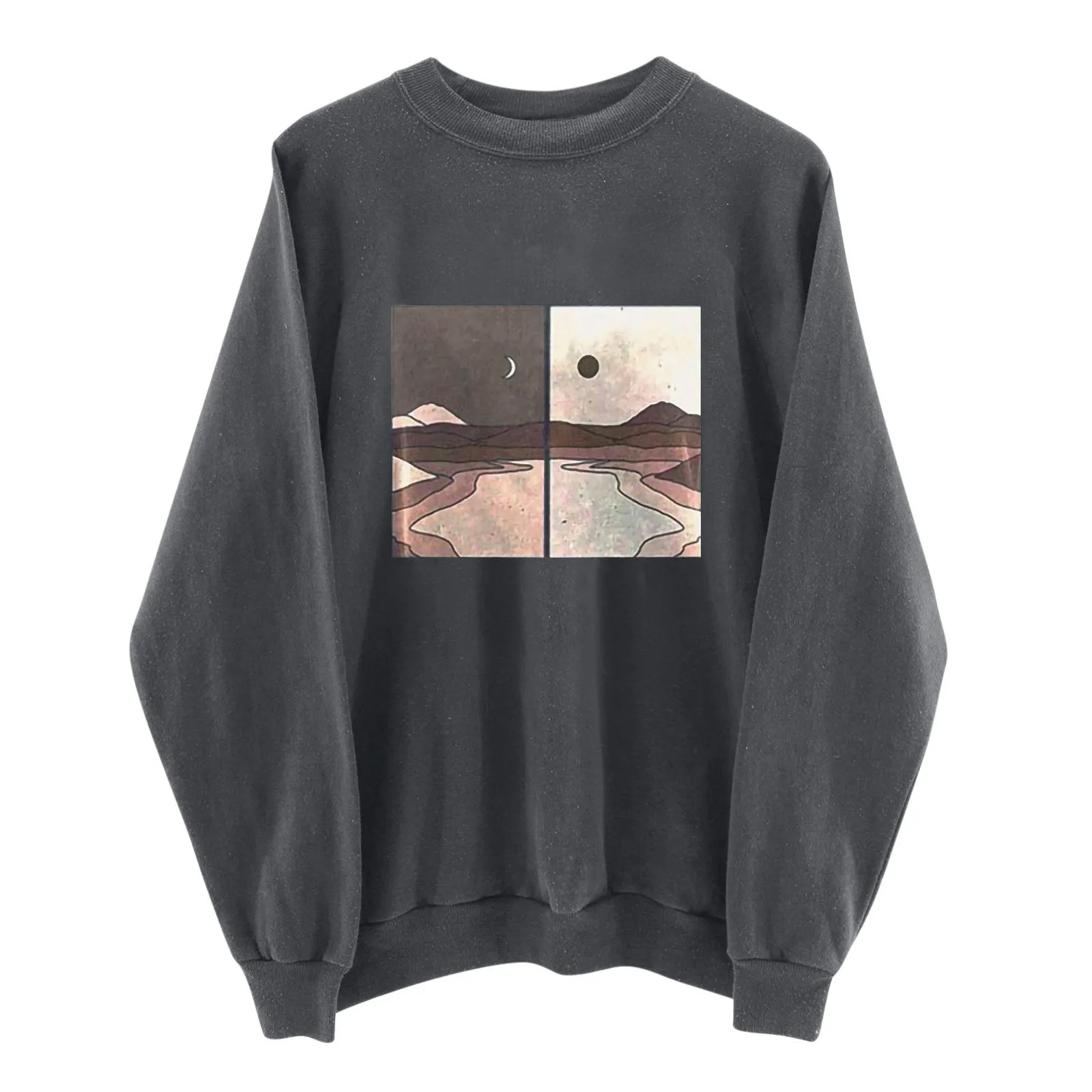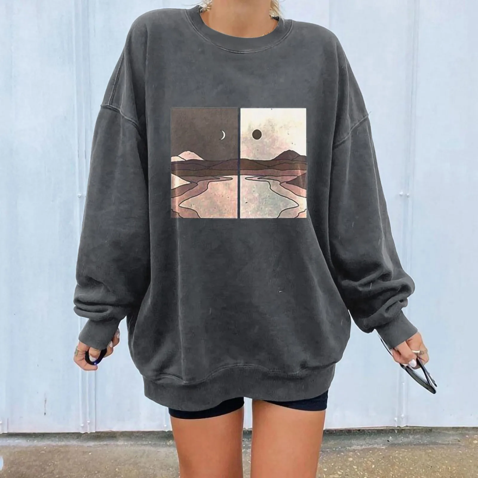 Свитшот женский с принтом заходящего солнца, Повседневная винтажная...