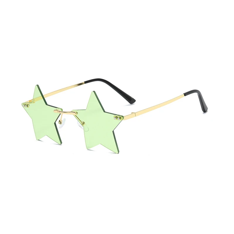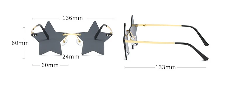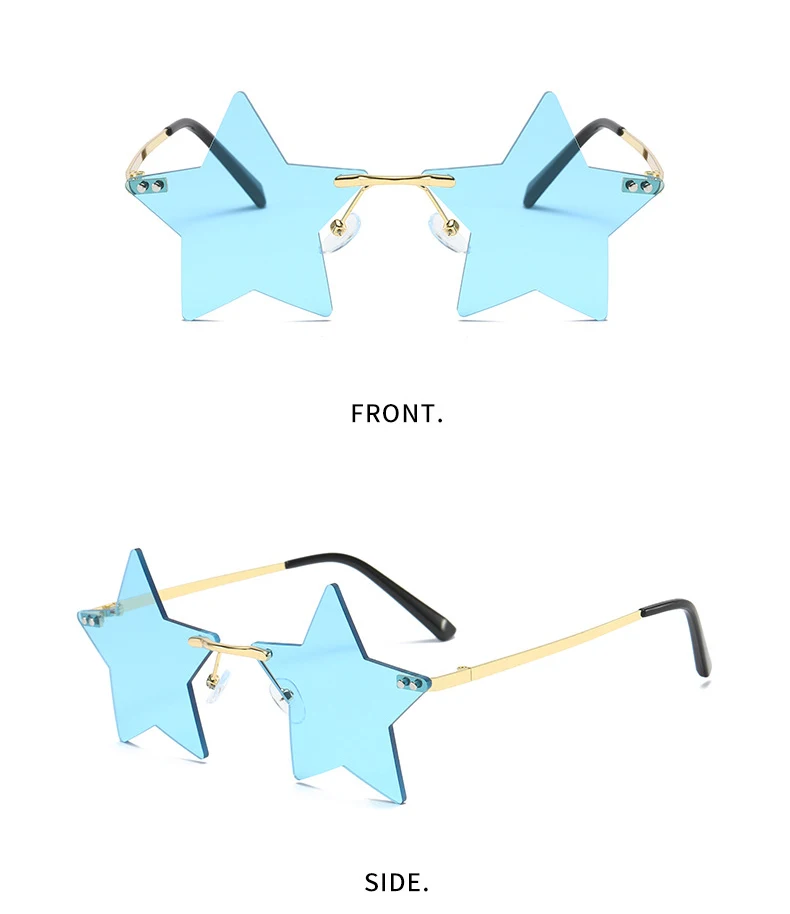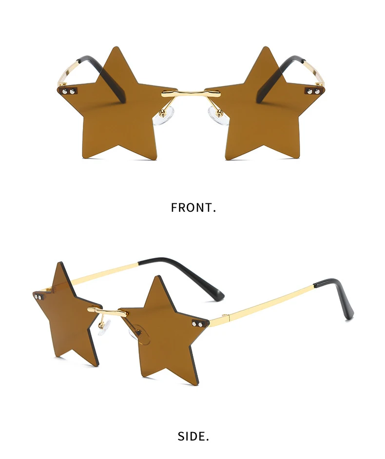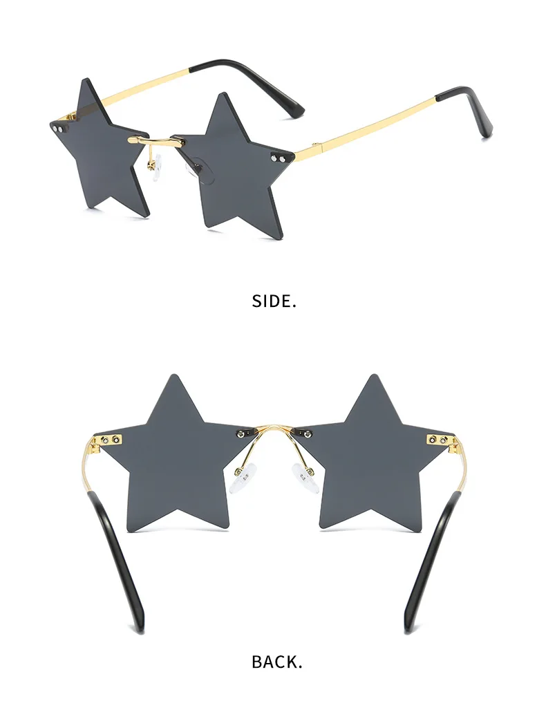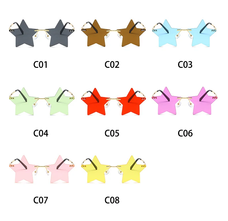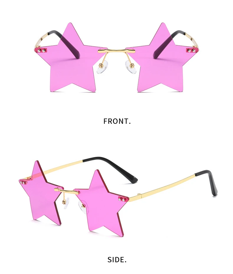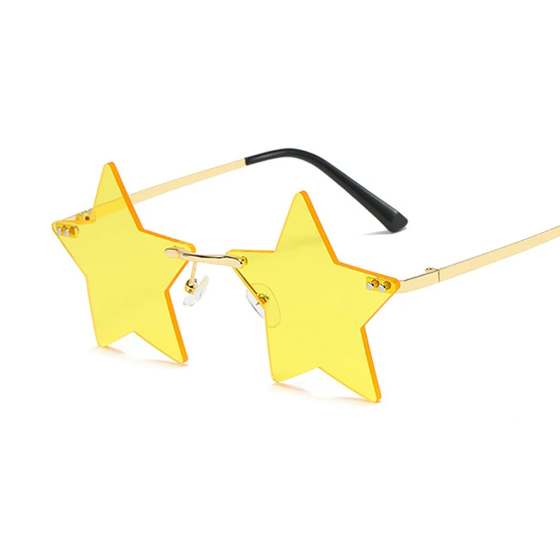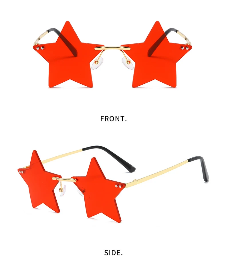 Солнцезащитные очки без оправы для мужчин и женщин, темные очки с пятиконечными звездами, с прозрачными линзами, в металлической оправе, черные, красные