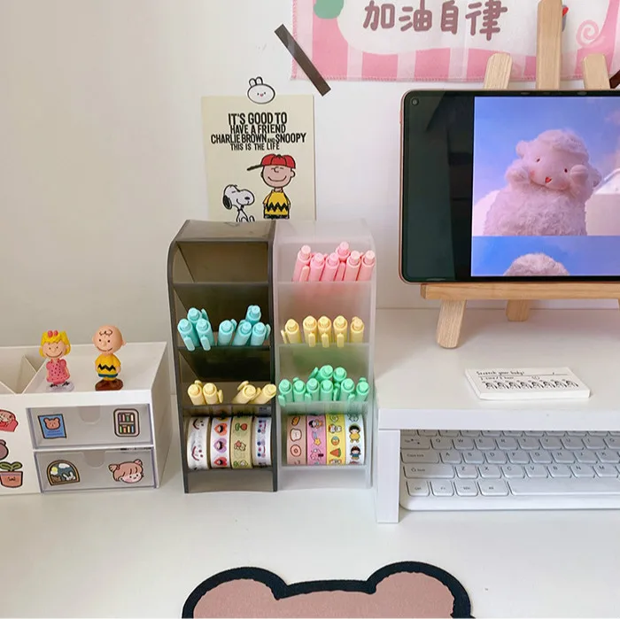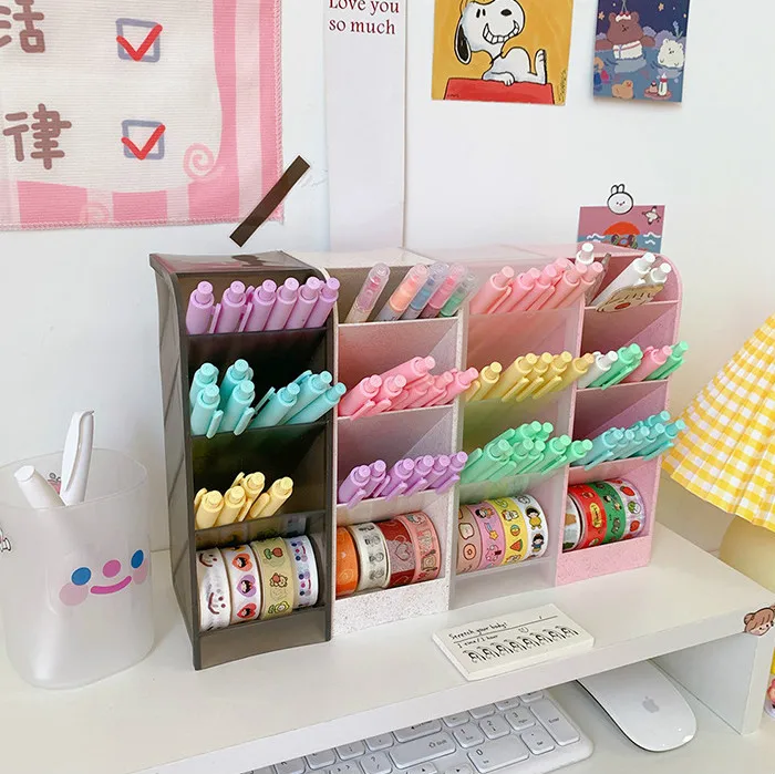 4 сетки Настольный ящик для хранения Макарон цветной держатель для ручки Карандаш Кисть для макияжа Органайзер для хранения губной помады простые школьные канцелярские принадлежности