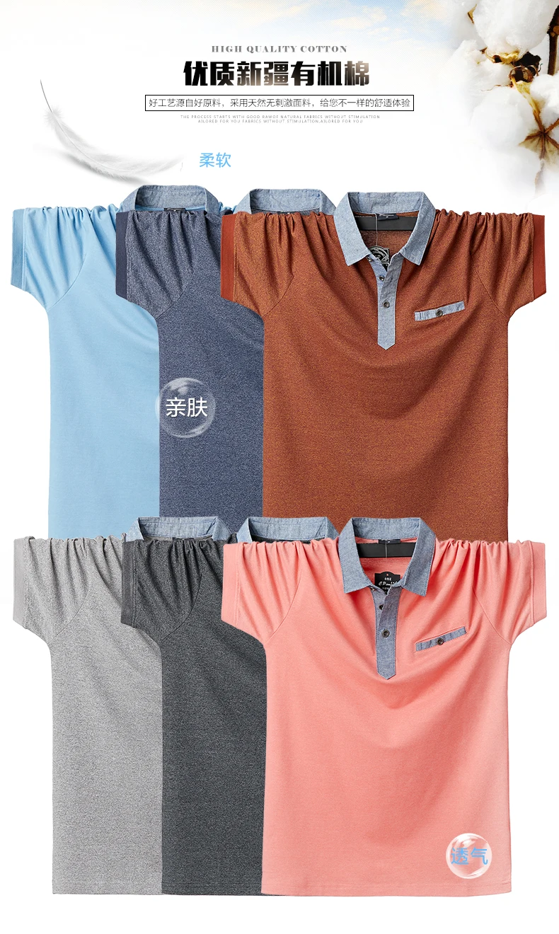 Плюс 6XL 5XL XXXXL Мужская рубашка-поло с воротником и коротким рук...