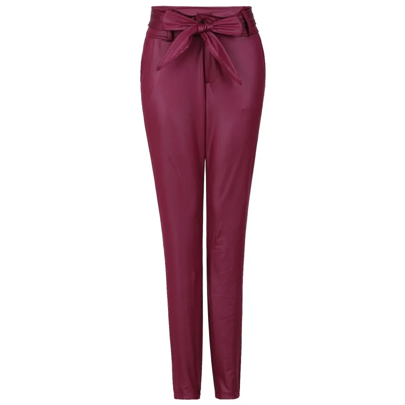 Брюки Paperbag из искусственной кожи на талию, женские повседневные...