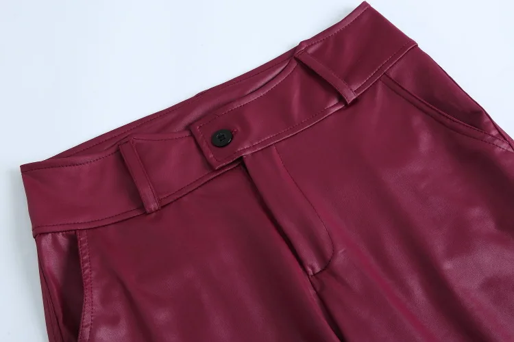 Женские модные повседневные брюки из искусственной кожи, однотонные...