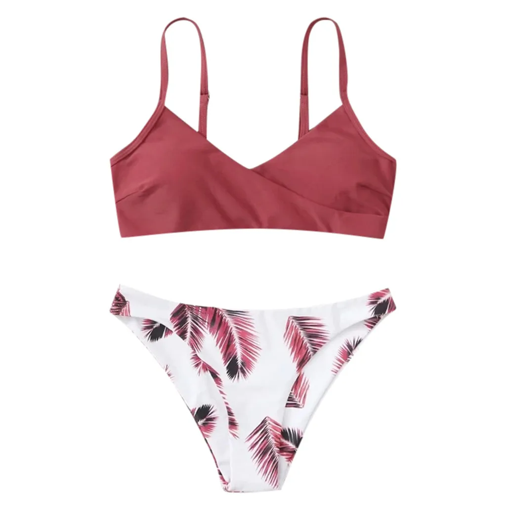 Купальники женские 2021 цветочный случайный принт бикини комплект пуш-ап купальник пляжная одежда Мягкий купальник из двух частей D
