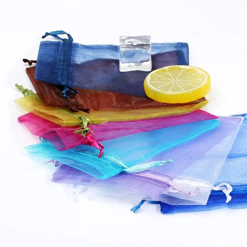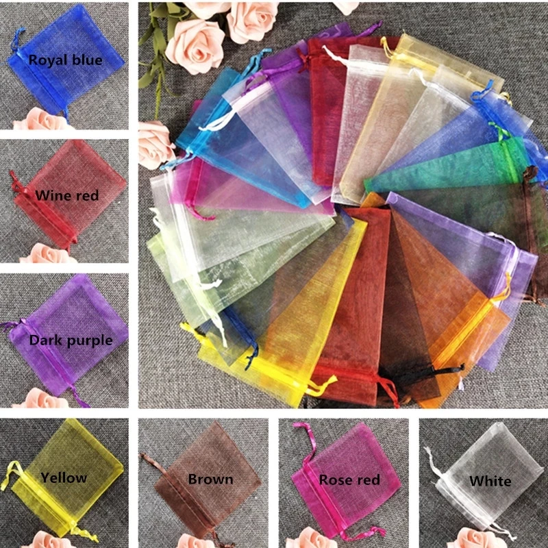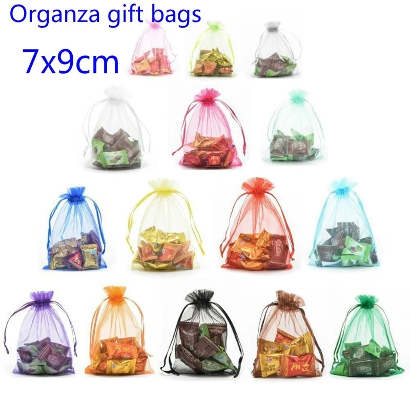 50100 шт. 7x9 9x12 10x15 см, мешочки из органзы, мешочки для упаковки ювелирных изделий, украшения для свадебной вечеринки, тюлевые мешочки на шнурке, подарочные мешочки 50%