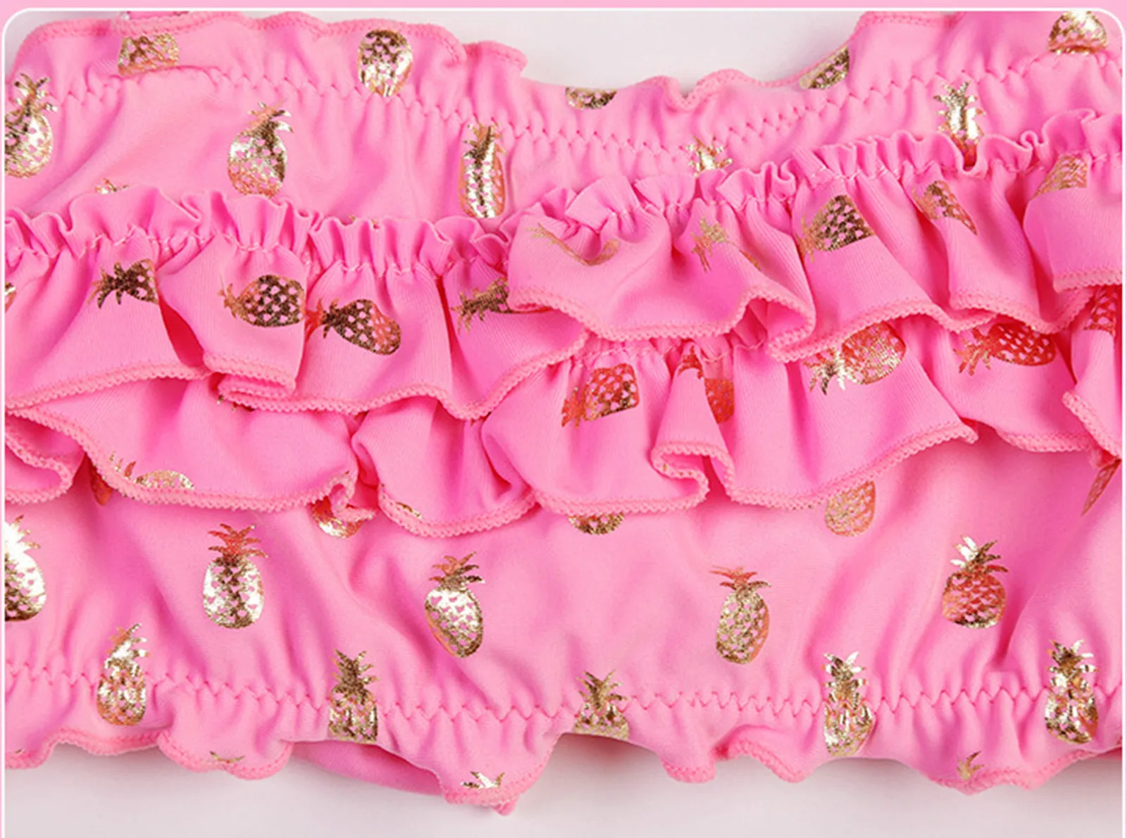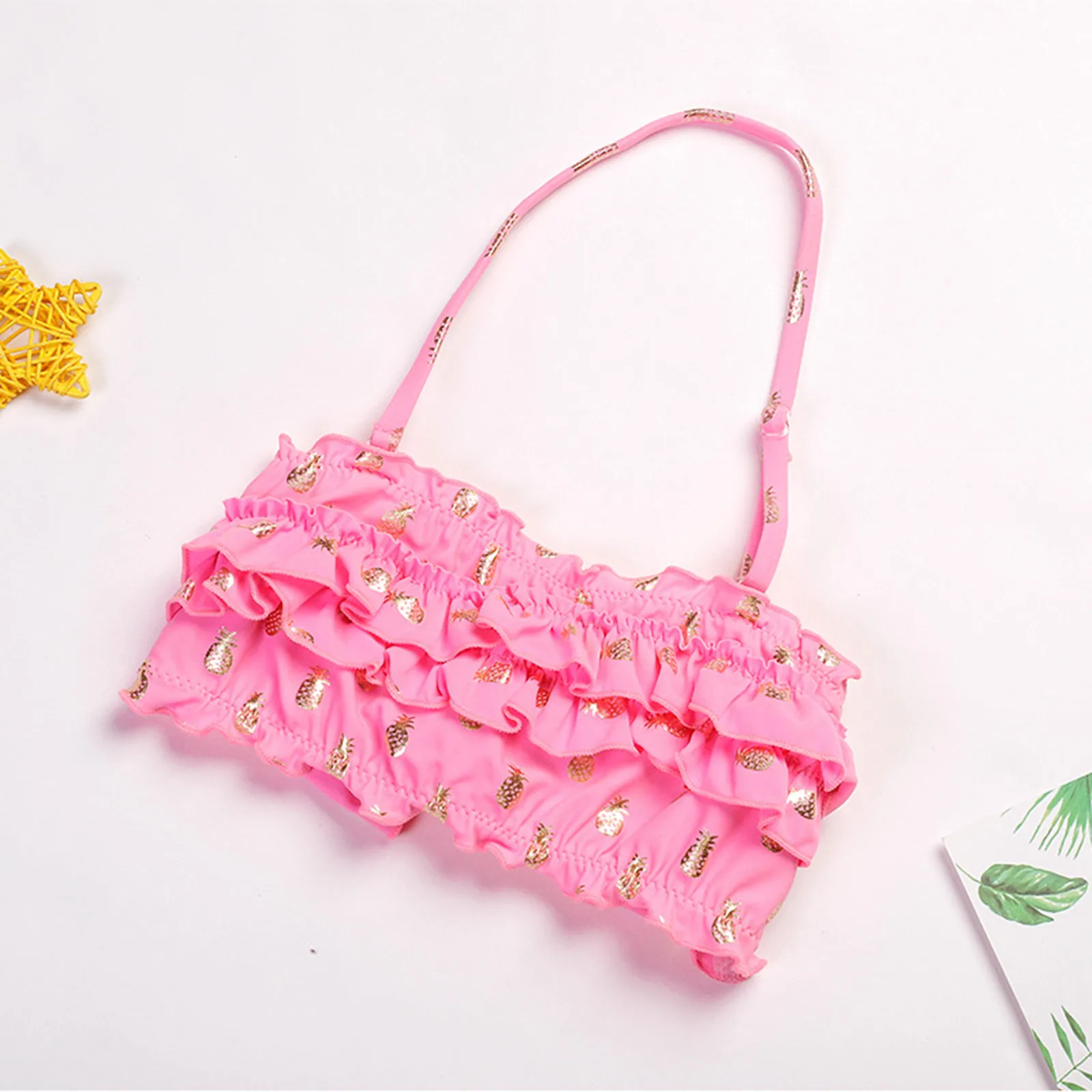 Купальный костюм с рюшами и принтом ананаса для маленьких девочек; Комплекты бикини