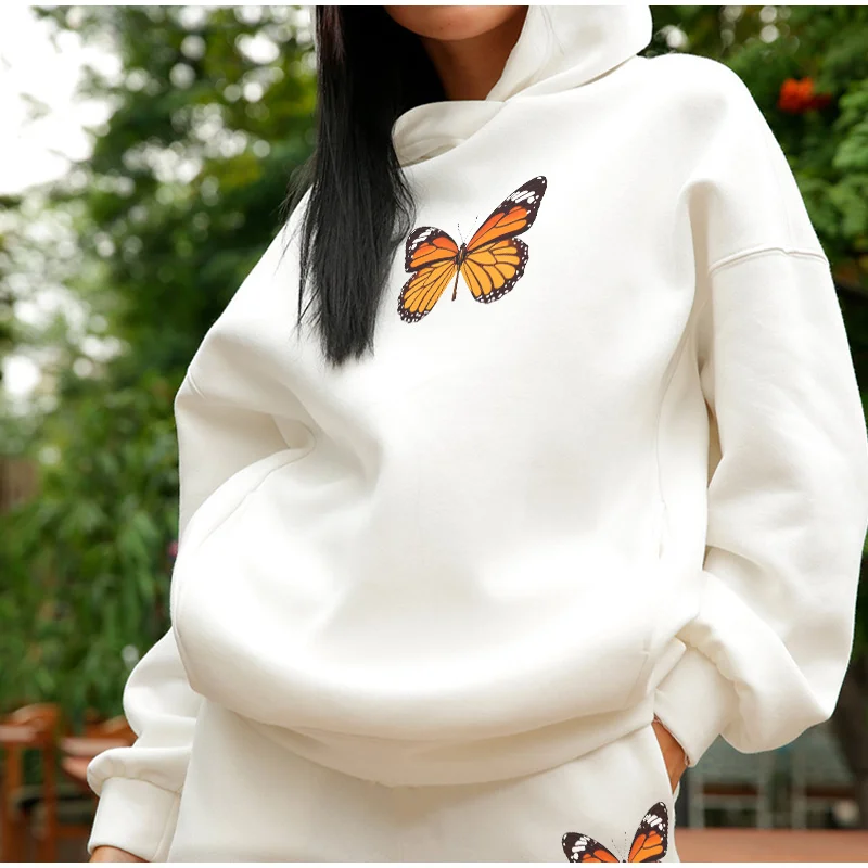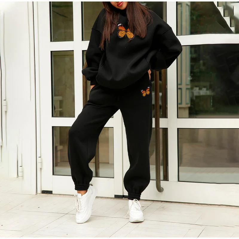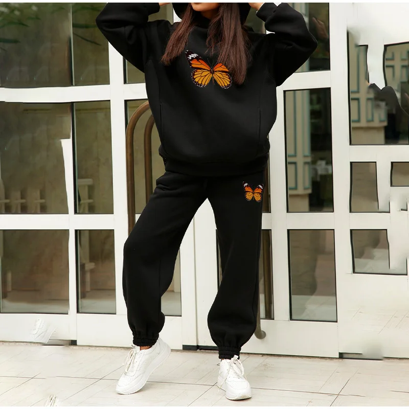 Style 1Butterfly Print Women's Suit Fleece Tracksuit