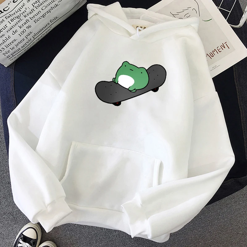 Зимняя одежда, женские толстовки с принтом лягушки и скейтборда, то...