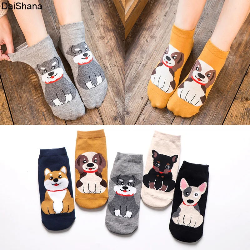 5 партлот весенне-летние модные женские хлопковые носки с мультяшным рисунком Hello Kitty Cat щенок собака Харадзюку кавайные Веселые носки для девочек