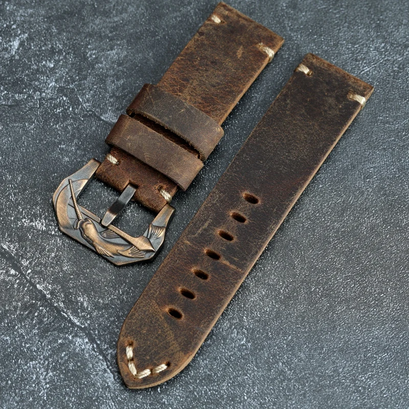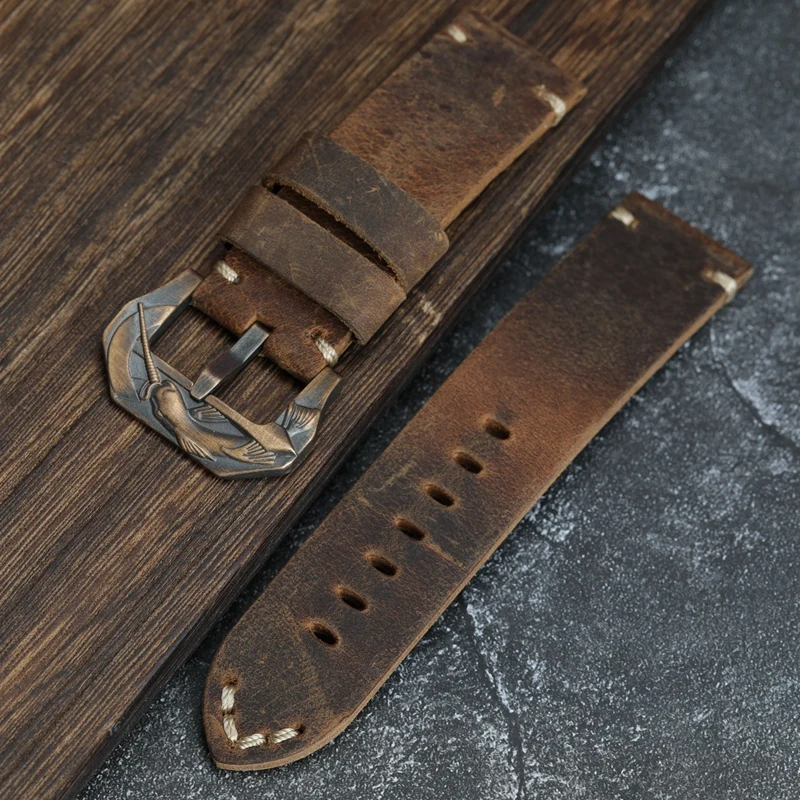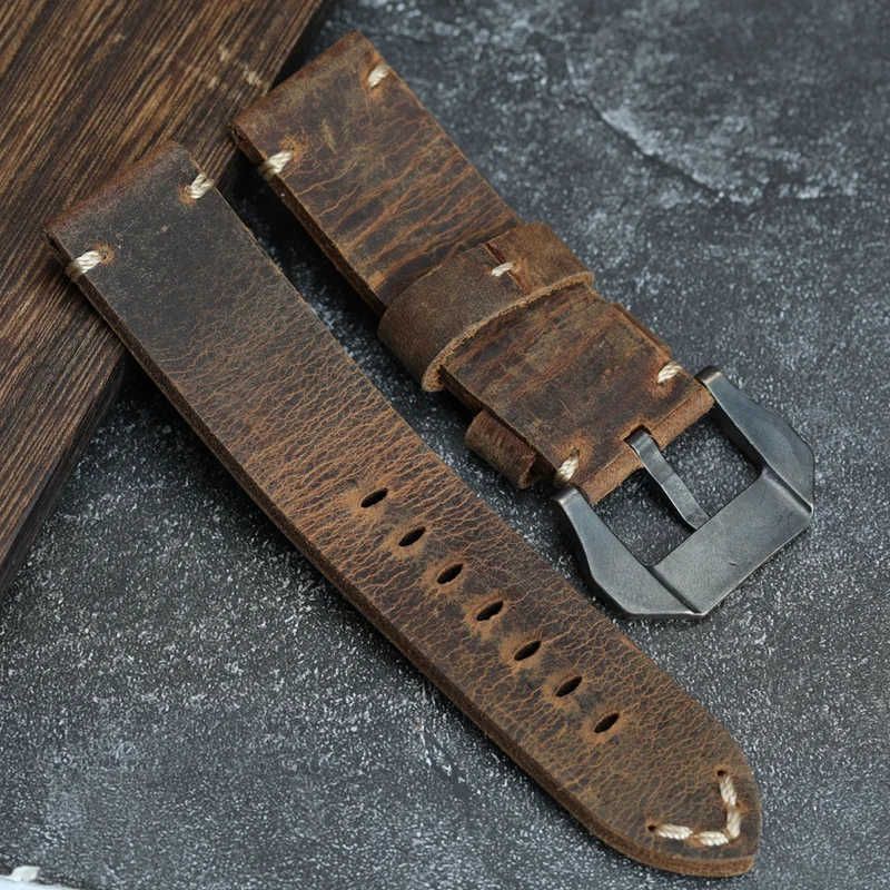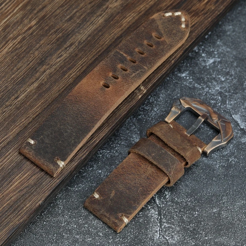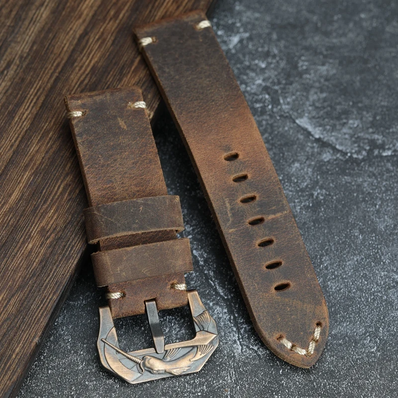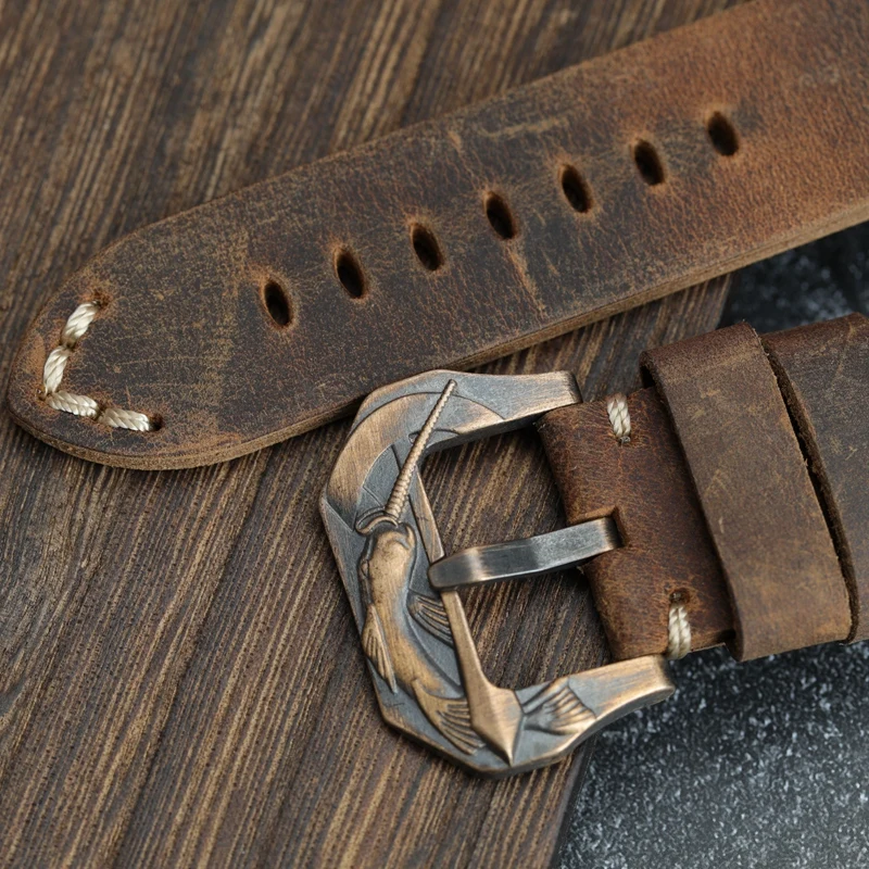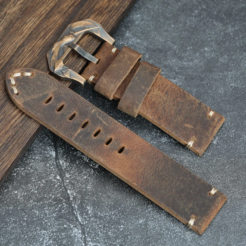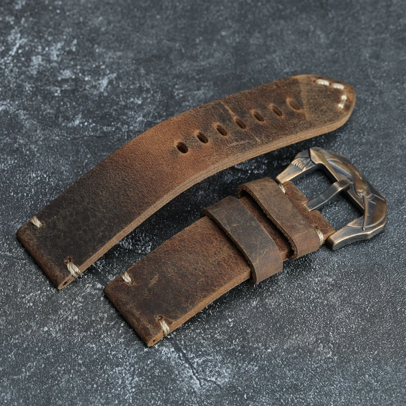 Ремешок из кожи Crazy Horse для наручных часов, коричневый браслет из телячьей кожи с бронзовой пряжкой для PAM111 441, 20 22 24 26 мм