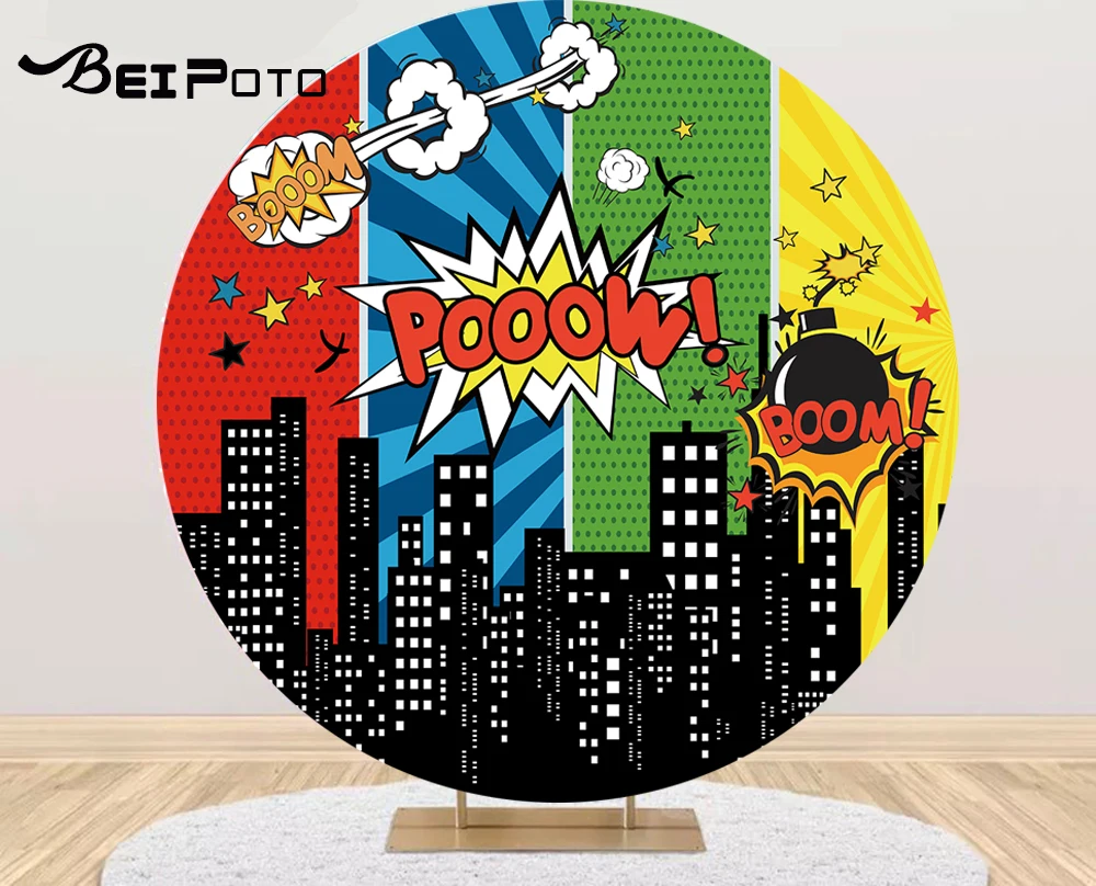 Супергероя городское здание Baby Shower День рождения фон виде незаполненного круга, фон для фотосъемки на день рождения скатерти YY-706