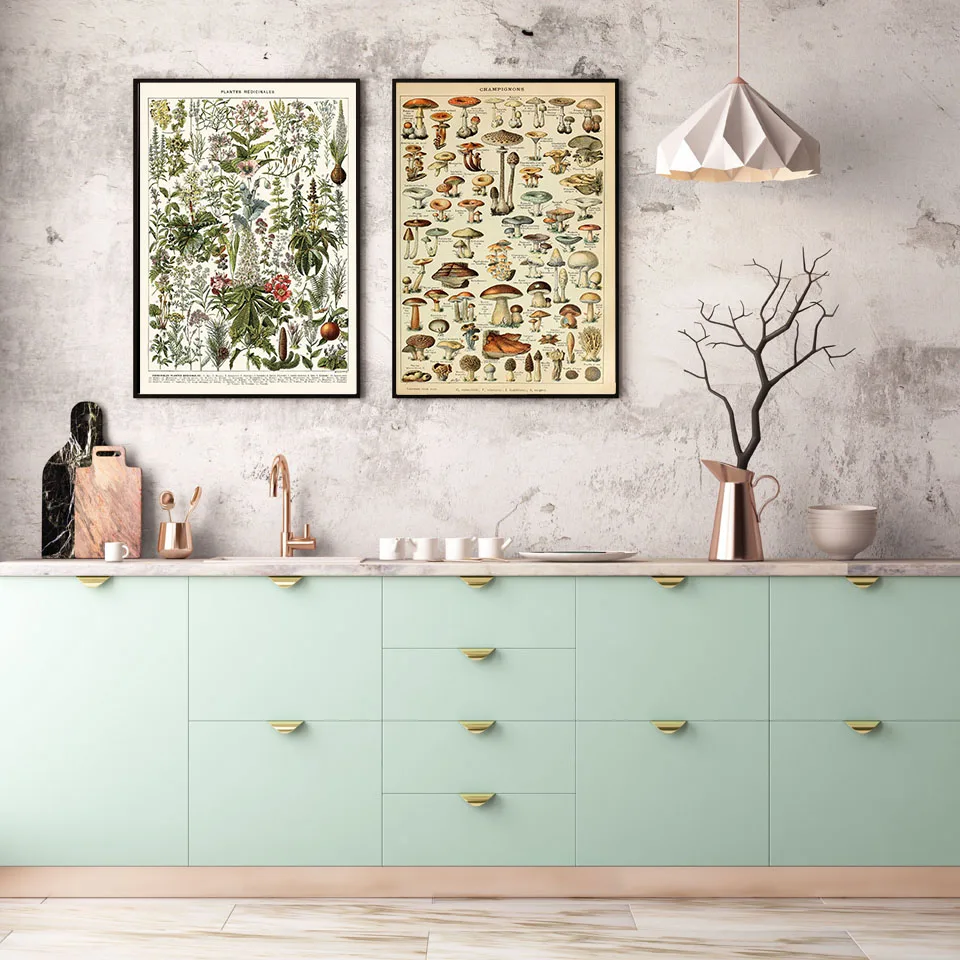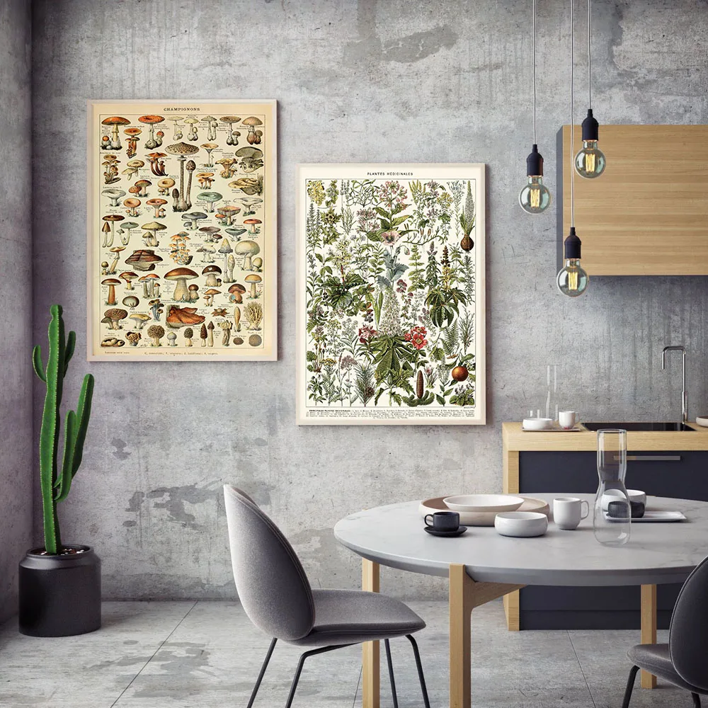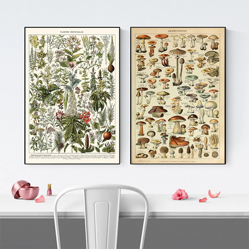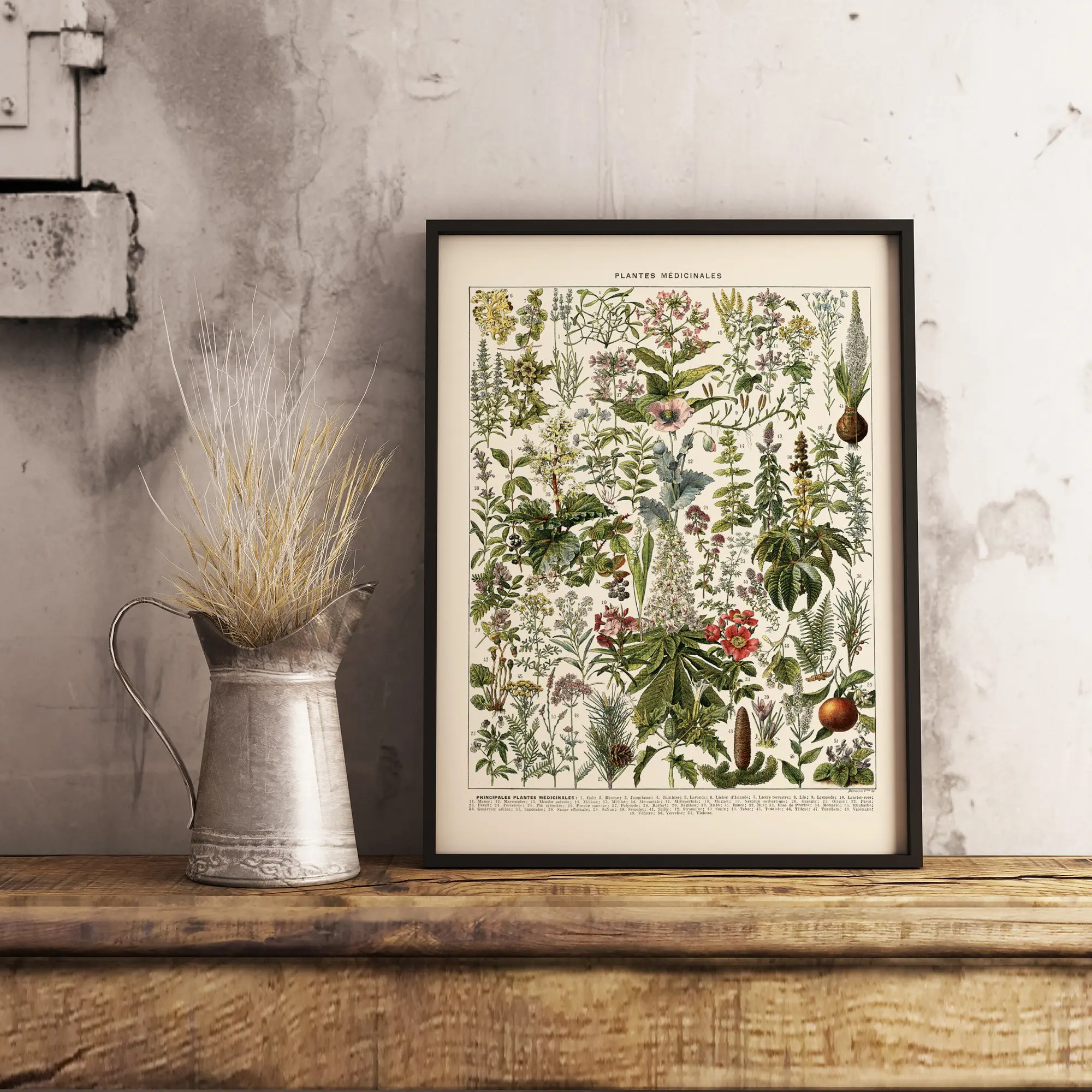 Винтажные французские иллюстрации, Постер диких растений, раститель...