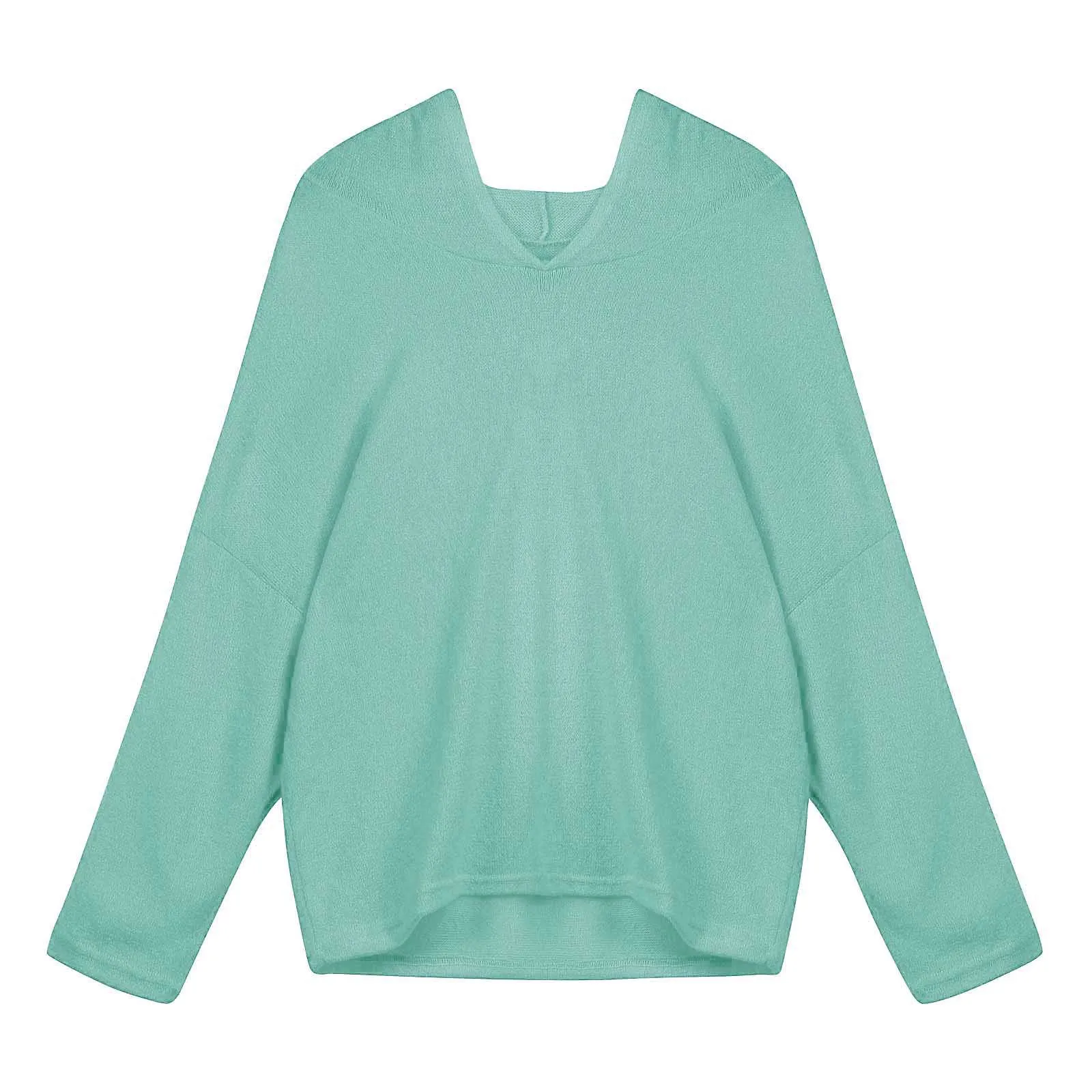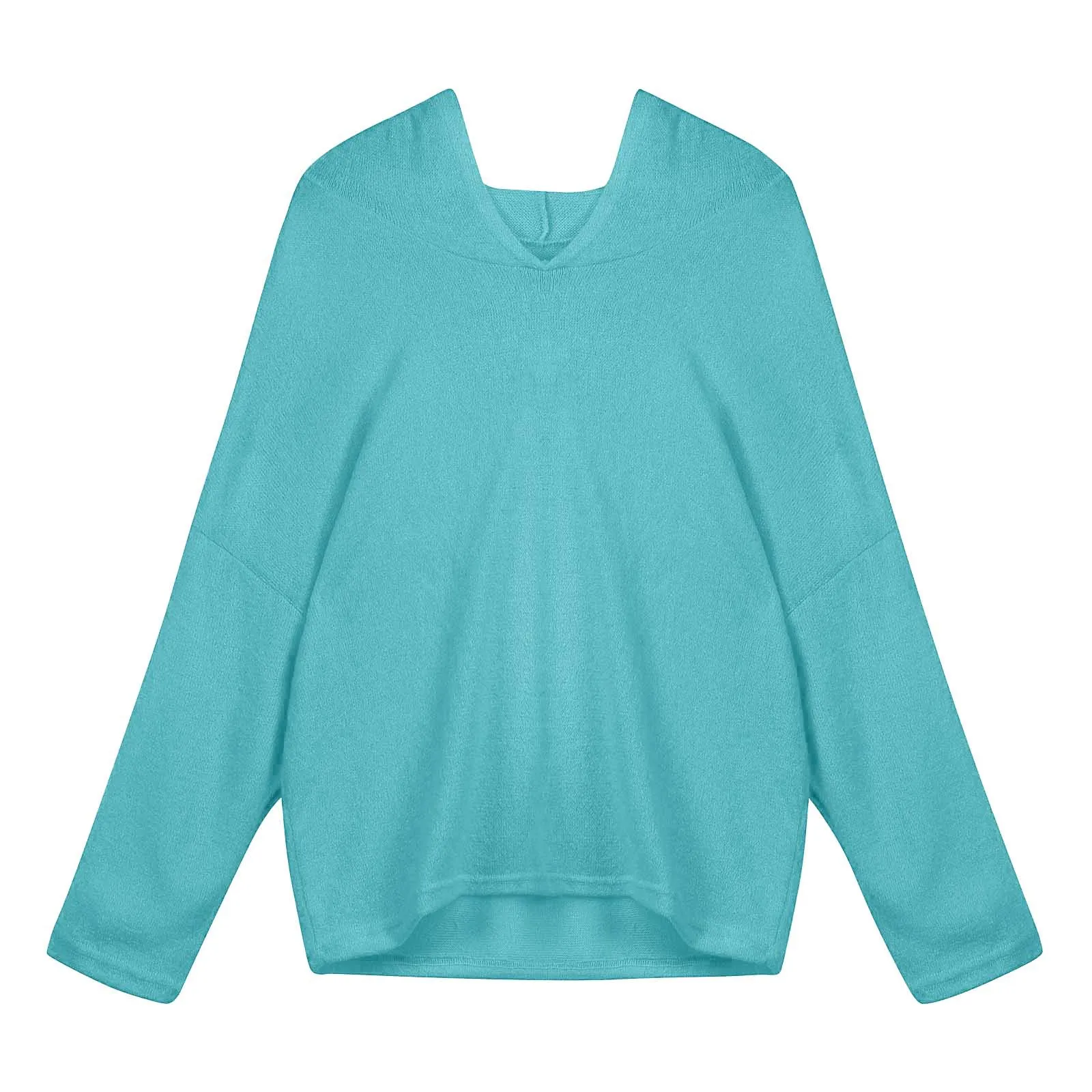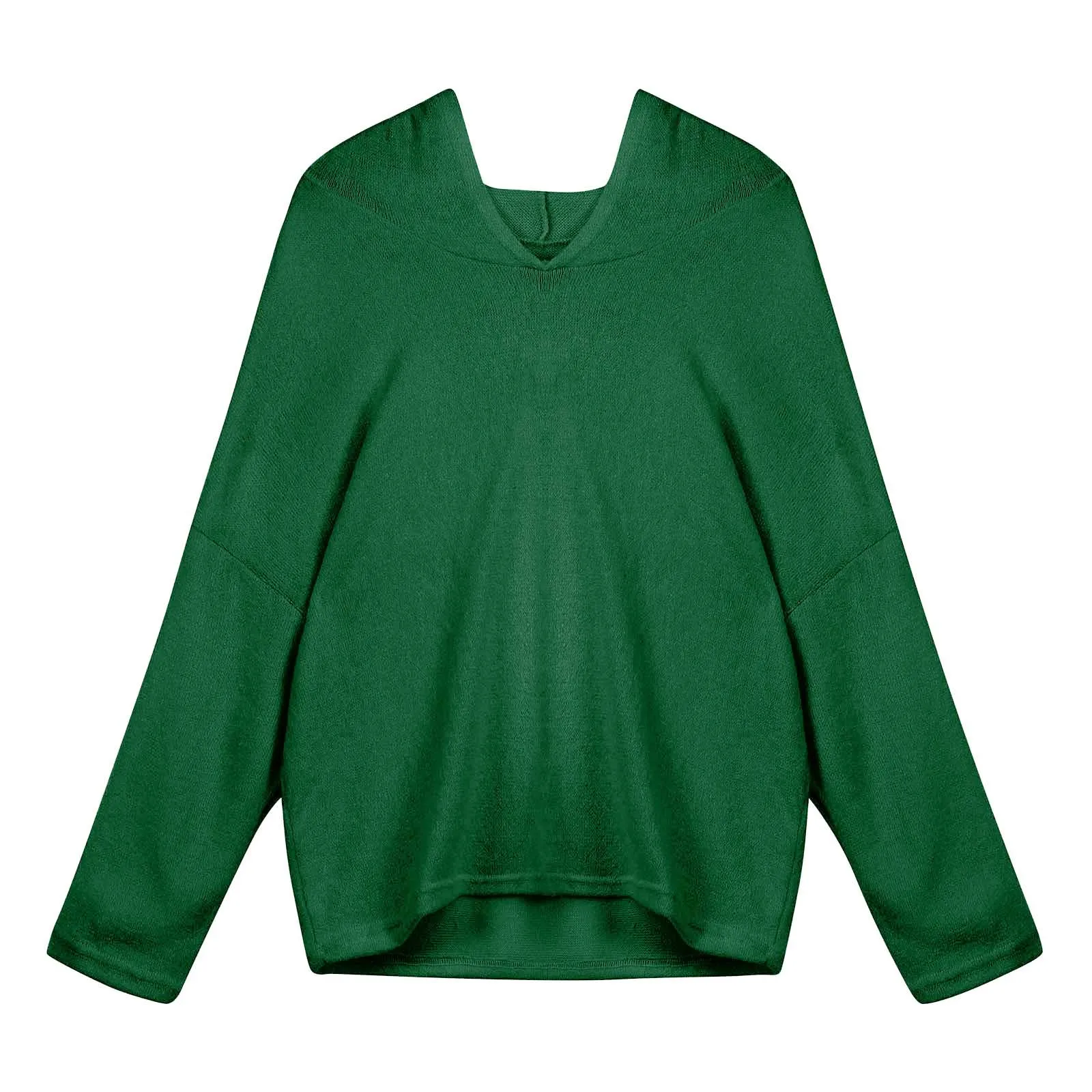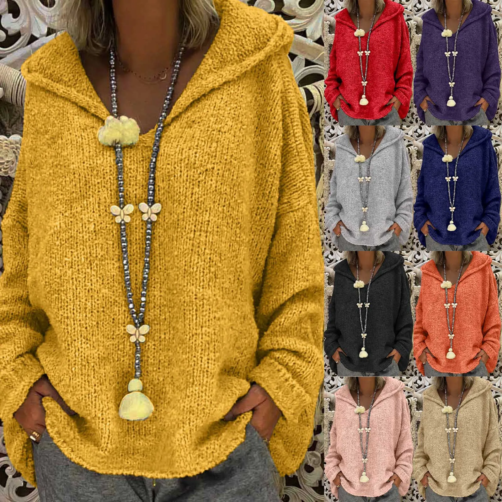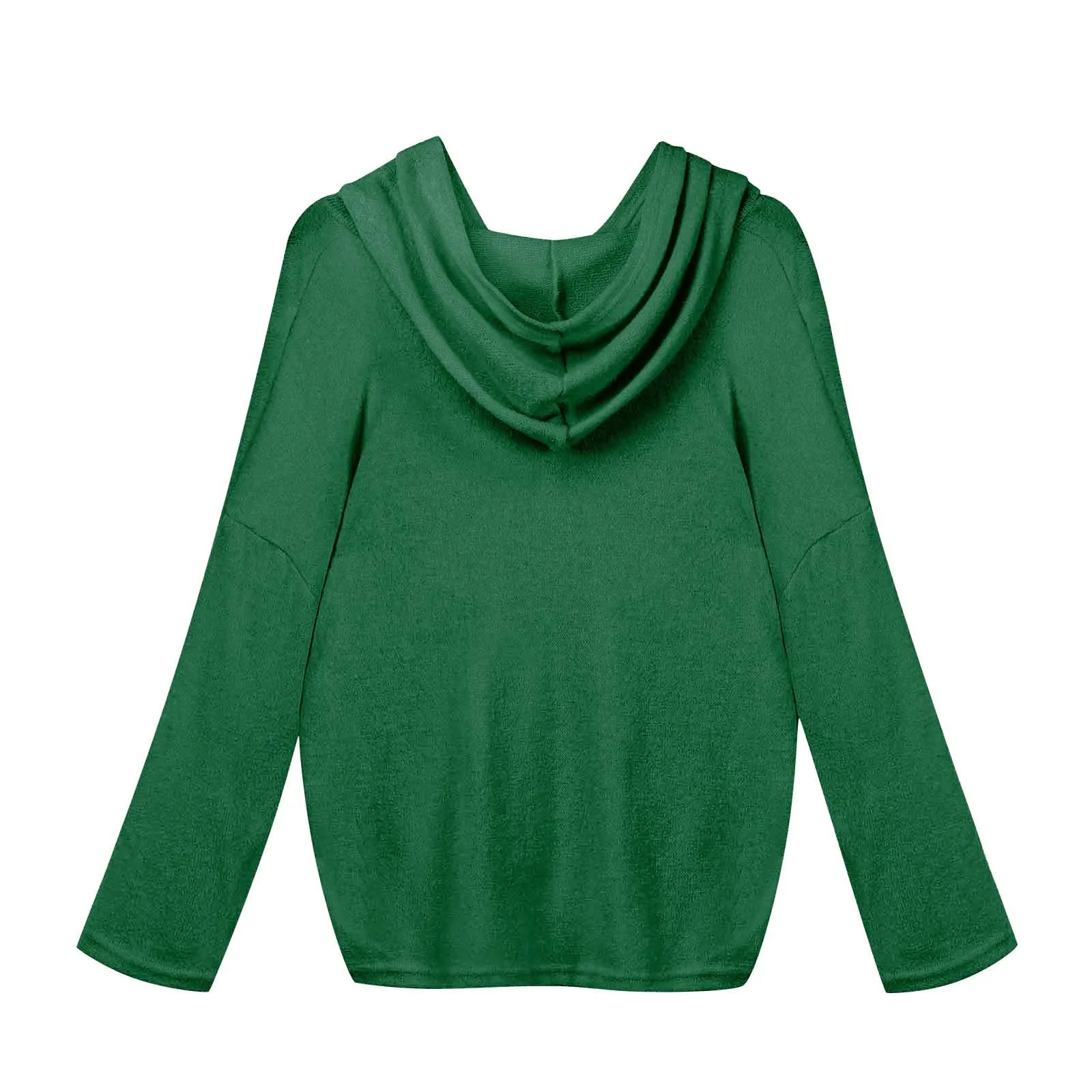 Женский модный свободный Однотонный свитер с капюшоном и длинными рукавами большого размера