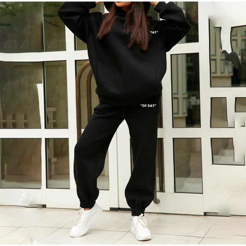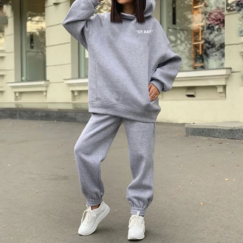 Женский флисовый костюм с принтом, повседневный спортивный костюм оверсайз, штаны с капюшоном и длинным рукавом, зима 2020