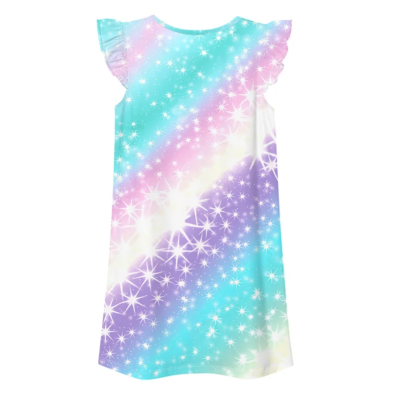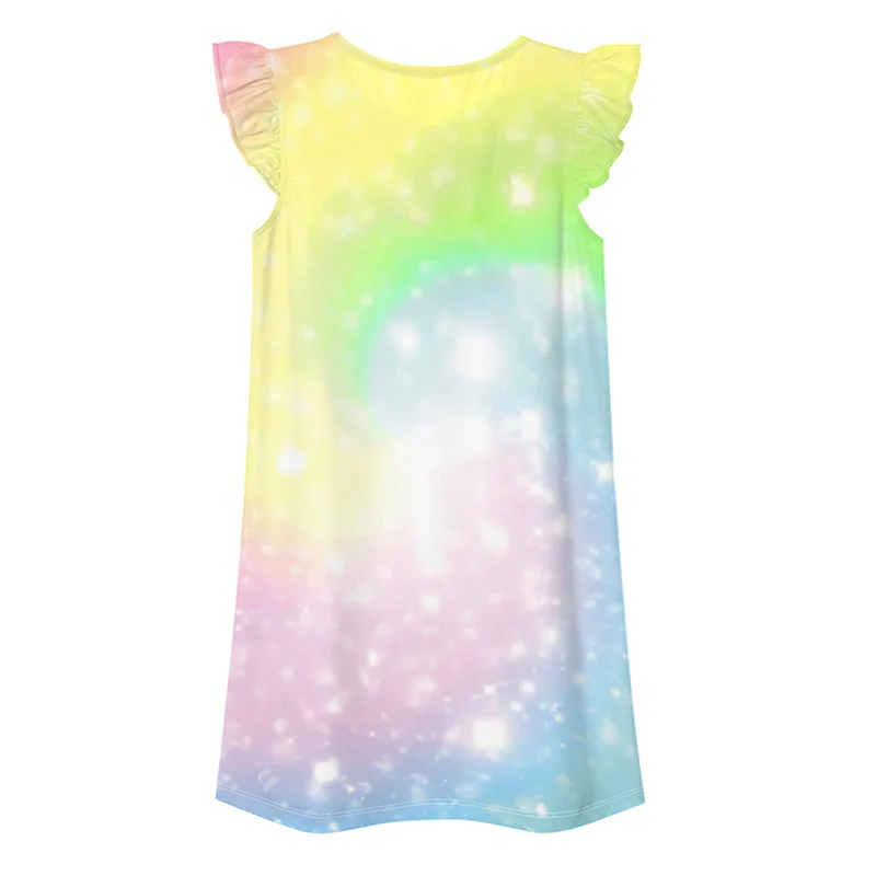 Симпатичные с рукавом в форме лепестка Единорог Платье с круглым вырезом под горловину, до колен Длина мамы и маленькой дочки; Свободное летнее платье для девочек; Одежда для детей в возрасте 10 для детей 12 лет повседневная одежда для девочек костюм для детей