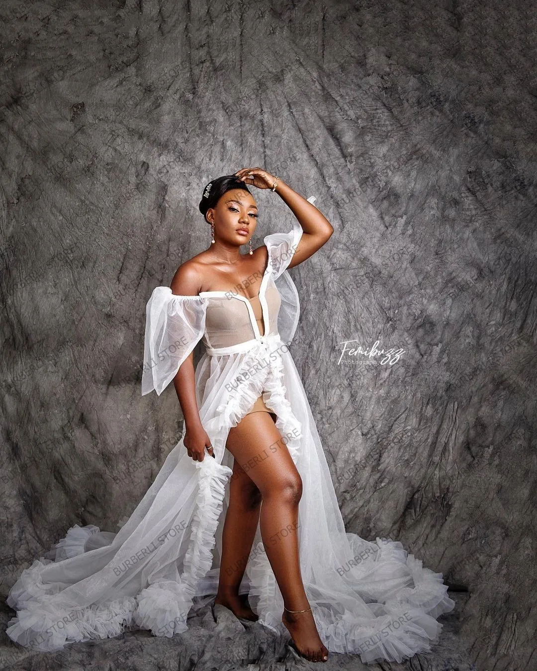 Соблазнительное Белое Женское длинное Тюлевое платье с оборками в несколько рядов с высоким разрезом женские платья плявечерние вечернее платье для беременных