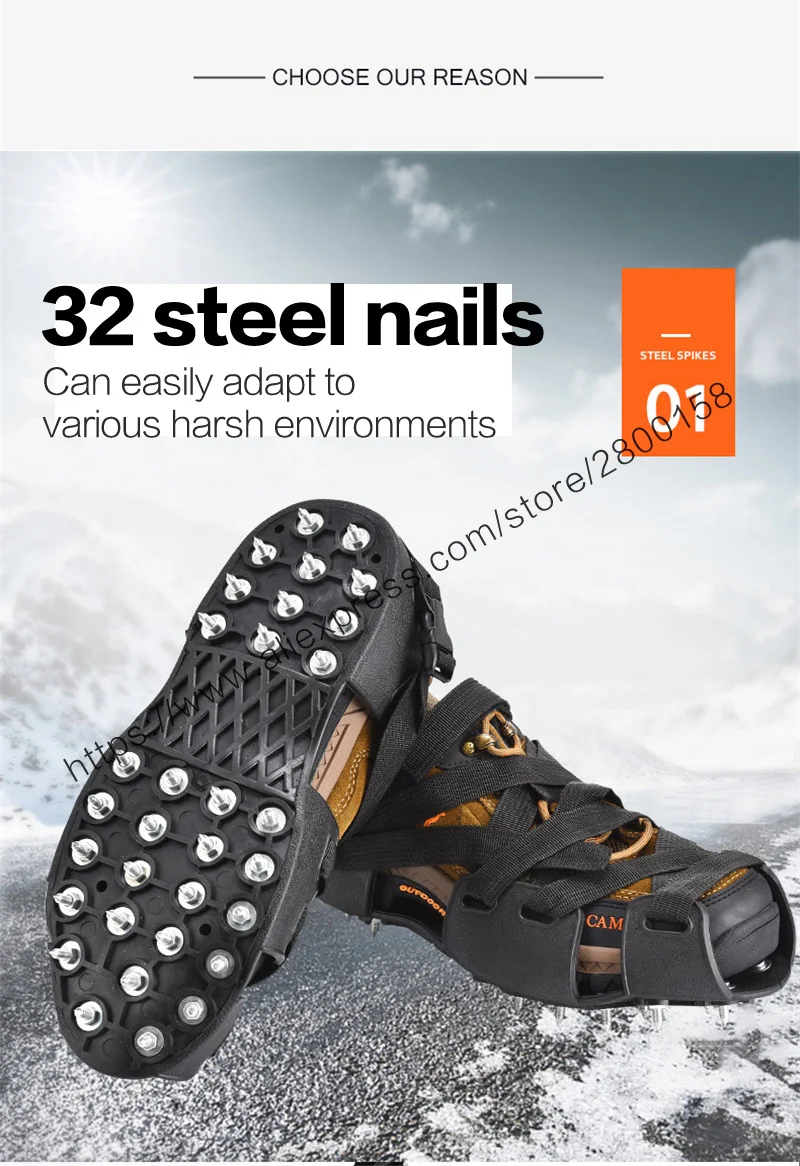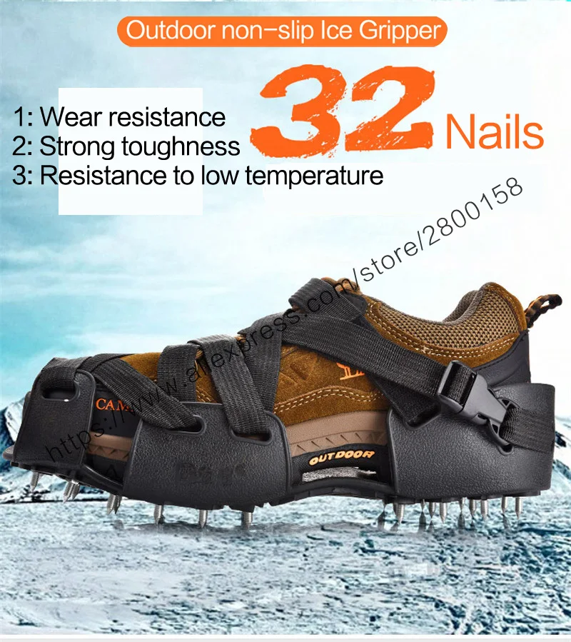 Бахилы противоскользящие, с шипами, с 32 зубьями, снег, лед, шипы