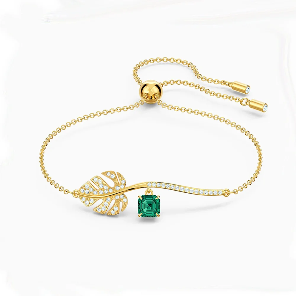 2020 SWA модный тропический набор листьев золотые тропические листья украшение Кристалл женский браслет Изысканный лучший подарок ювелирные изделия