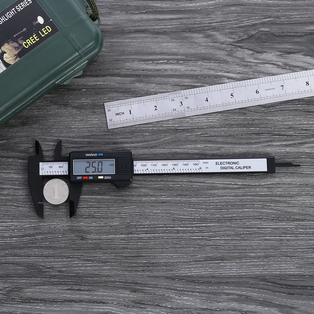 Цифровой штангенциркуль из углеродного волокна с ЖК-дисплеем, 150 мм