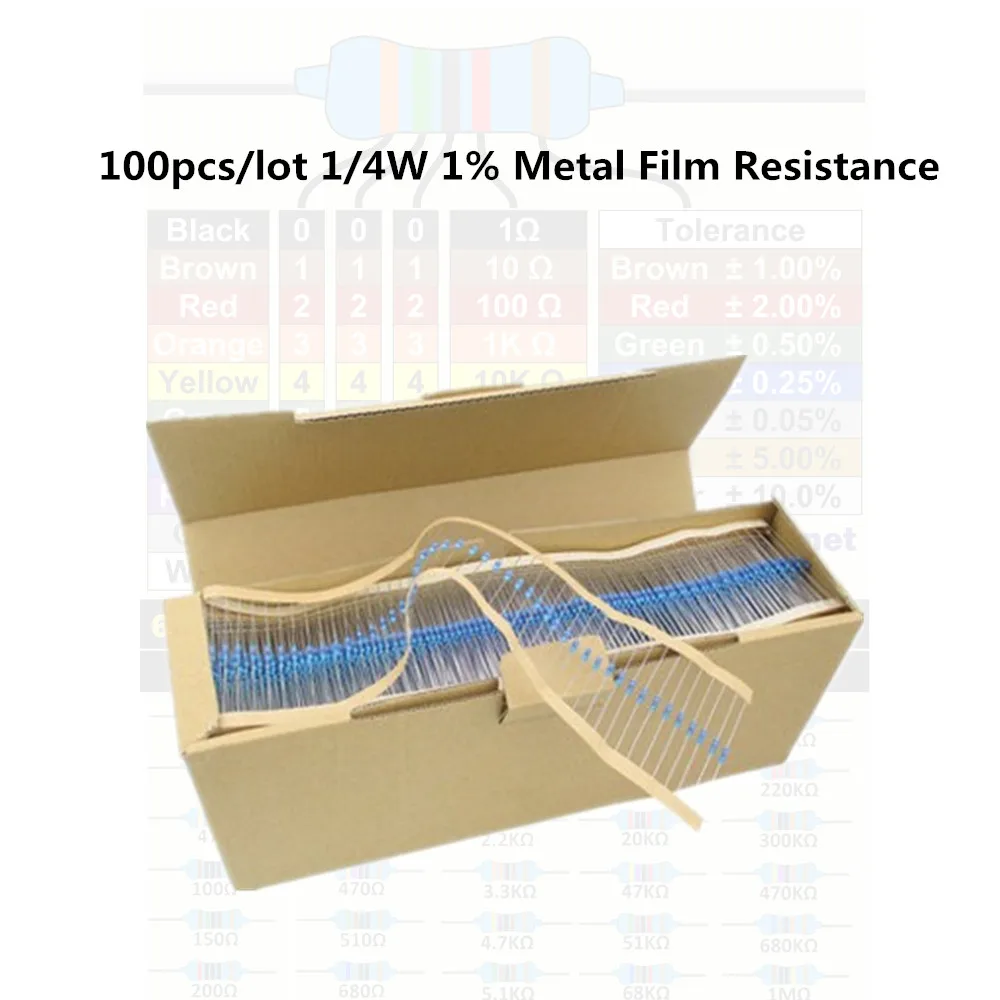 100 шт. 1/4W 10ohm-1M 1% металлического пленочного резистора