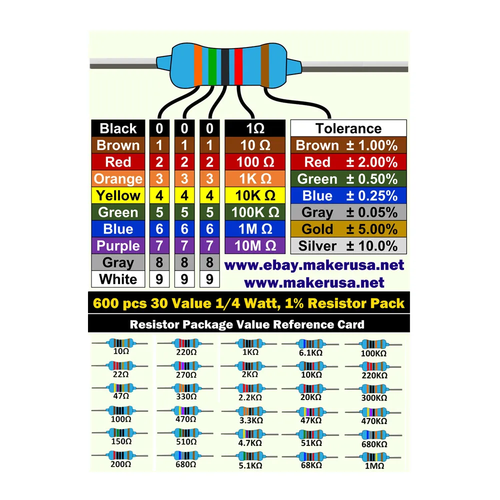 Набор металлических пленочных резисторов 600 шт.лот 14 Вт, набор ре...