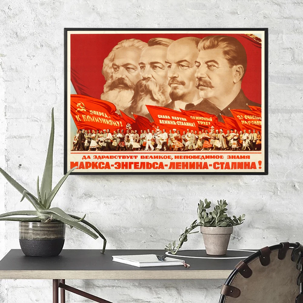 Коммунизм плакат Ленин прожил жизнь будет жить Холст Картина Красна...