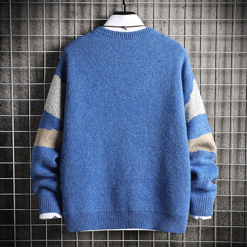 Мужской вязаный свитер в стиле Харадзюку, Полосатый пуловер, повсед...