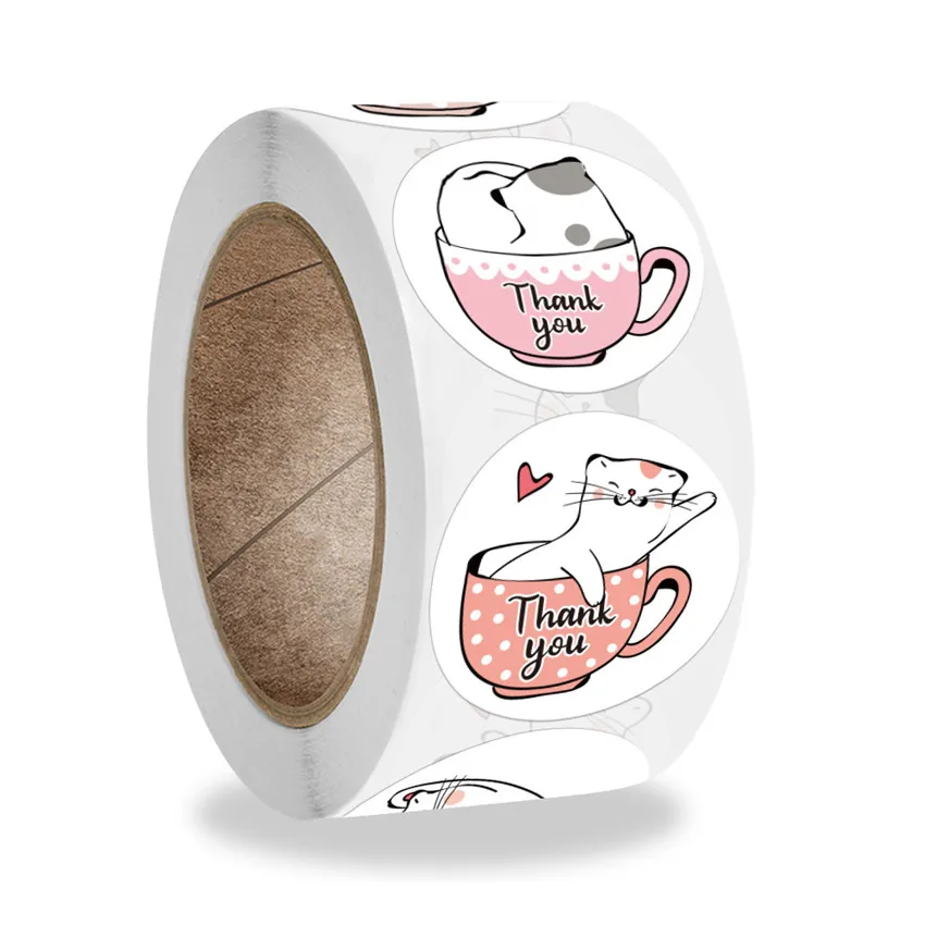 500 шт.рулон 1 дюйм Милая этикетка с котиком Спасибо наклейки подхо...