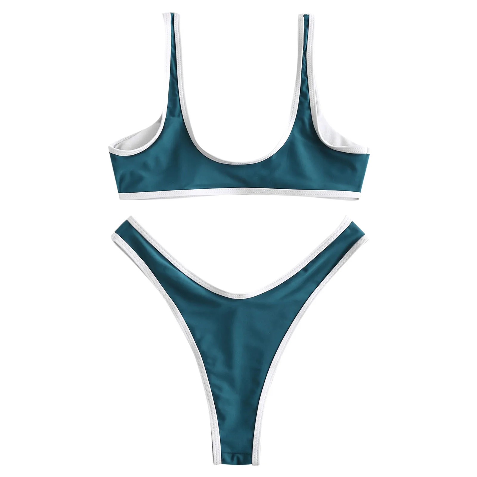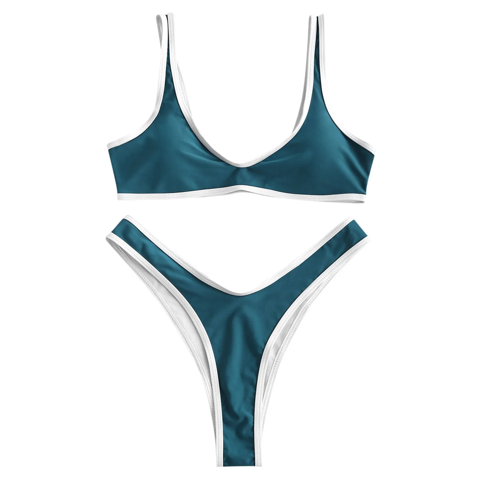 Женский сексуальный однотонный купальник-бикини пуш-ап с высоким вырезом на шнуровке