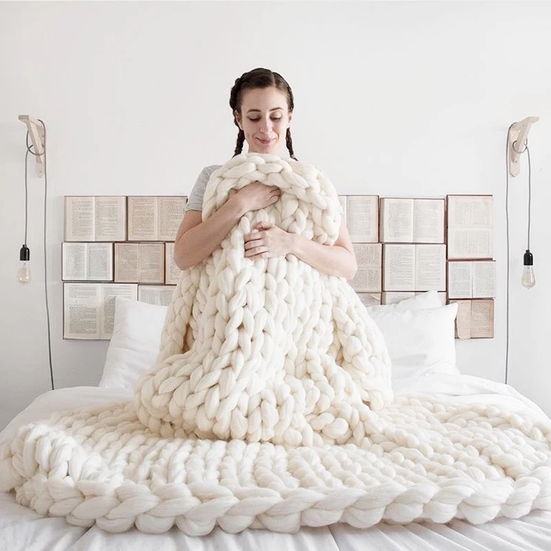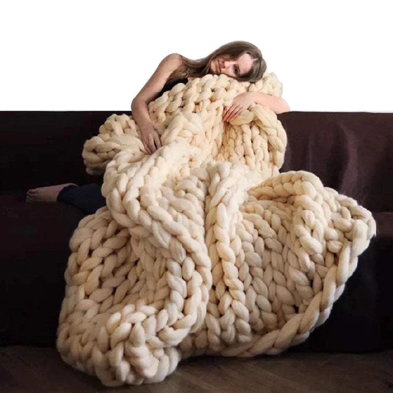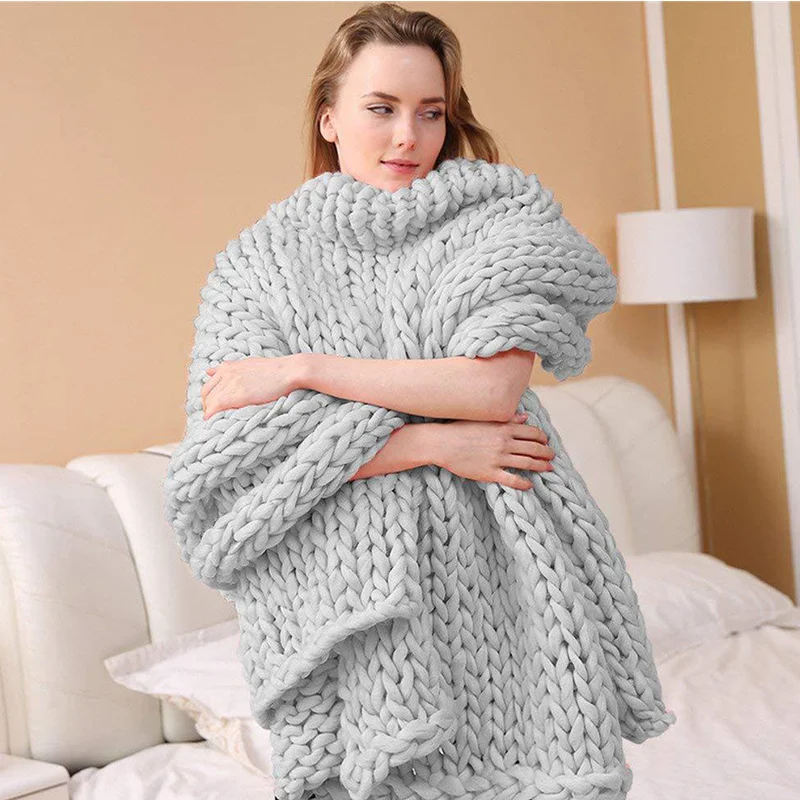 Модное одеяло крупной ручной вязки, толстые шерстяные одеяла из пол...