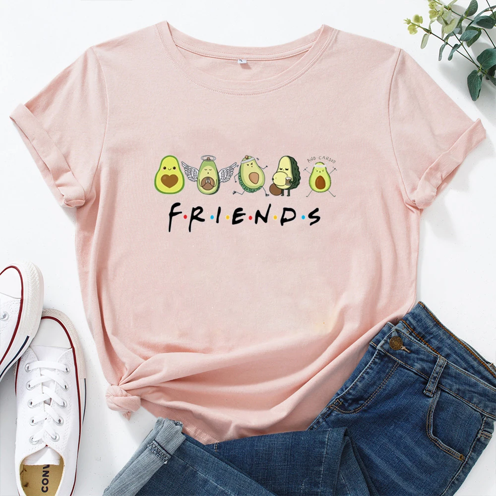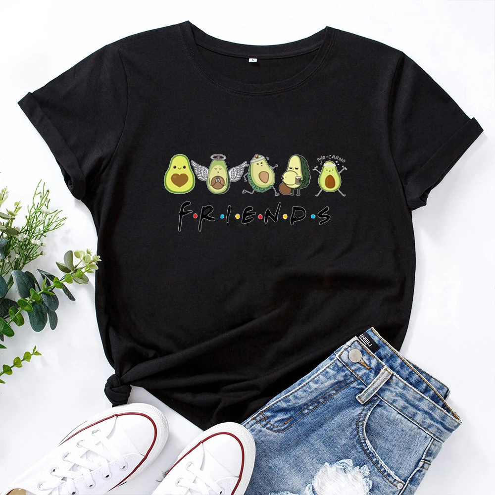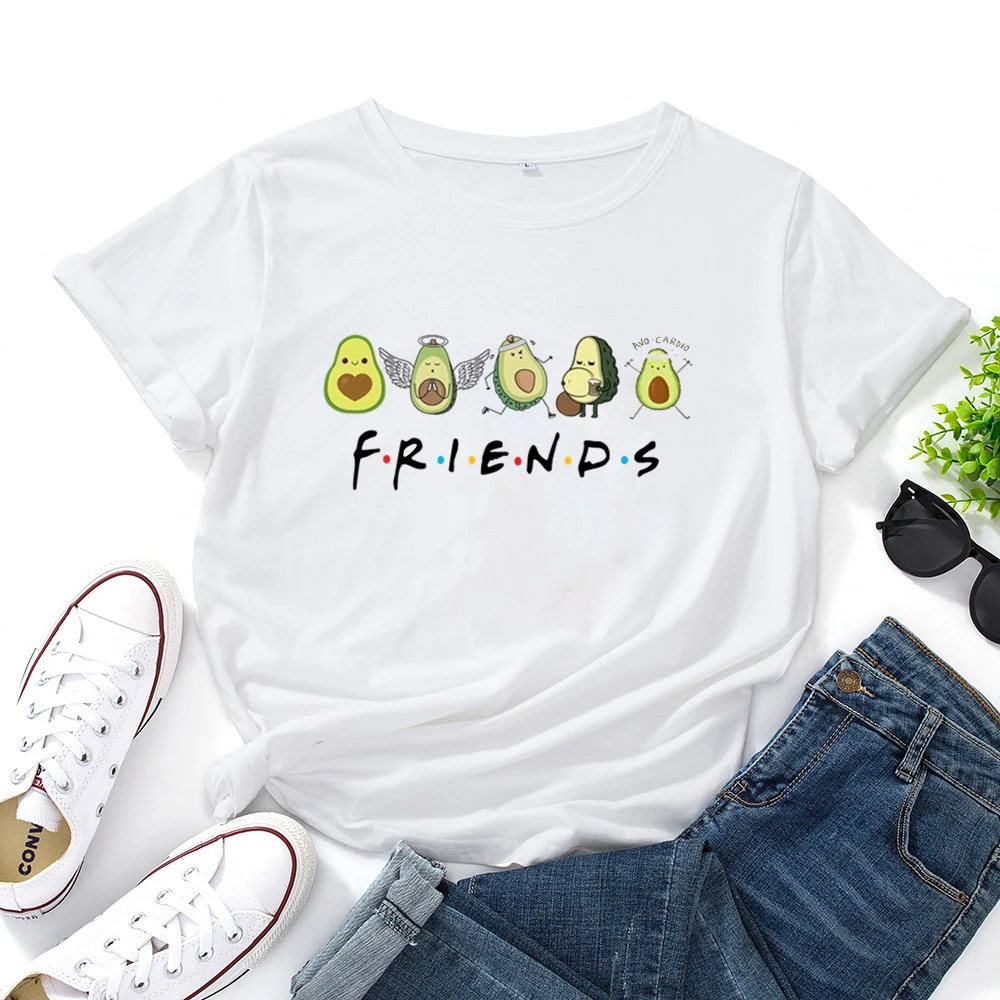 Футболка женская с круглым вырезом, милая Повседневная рубашка из хлопка с забавным мультяшным принтом друзей, авокадо