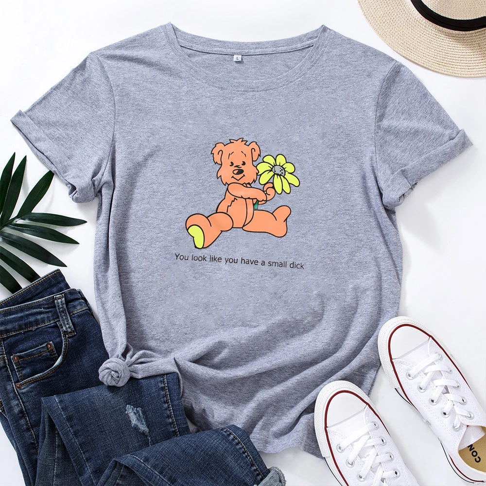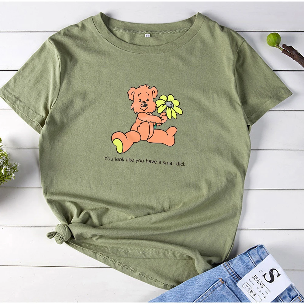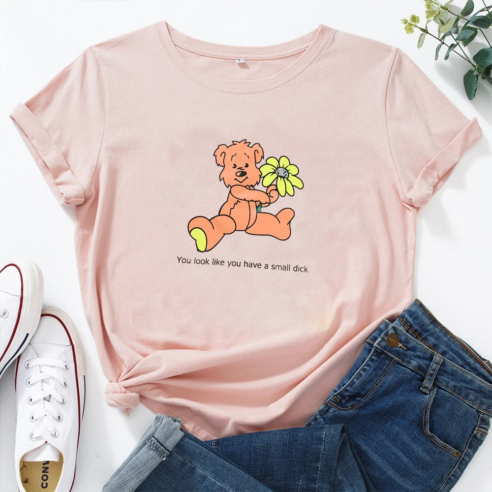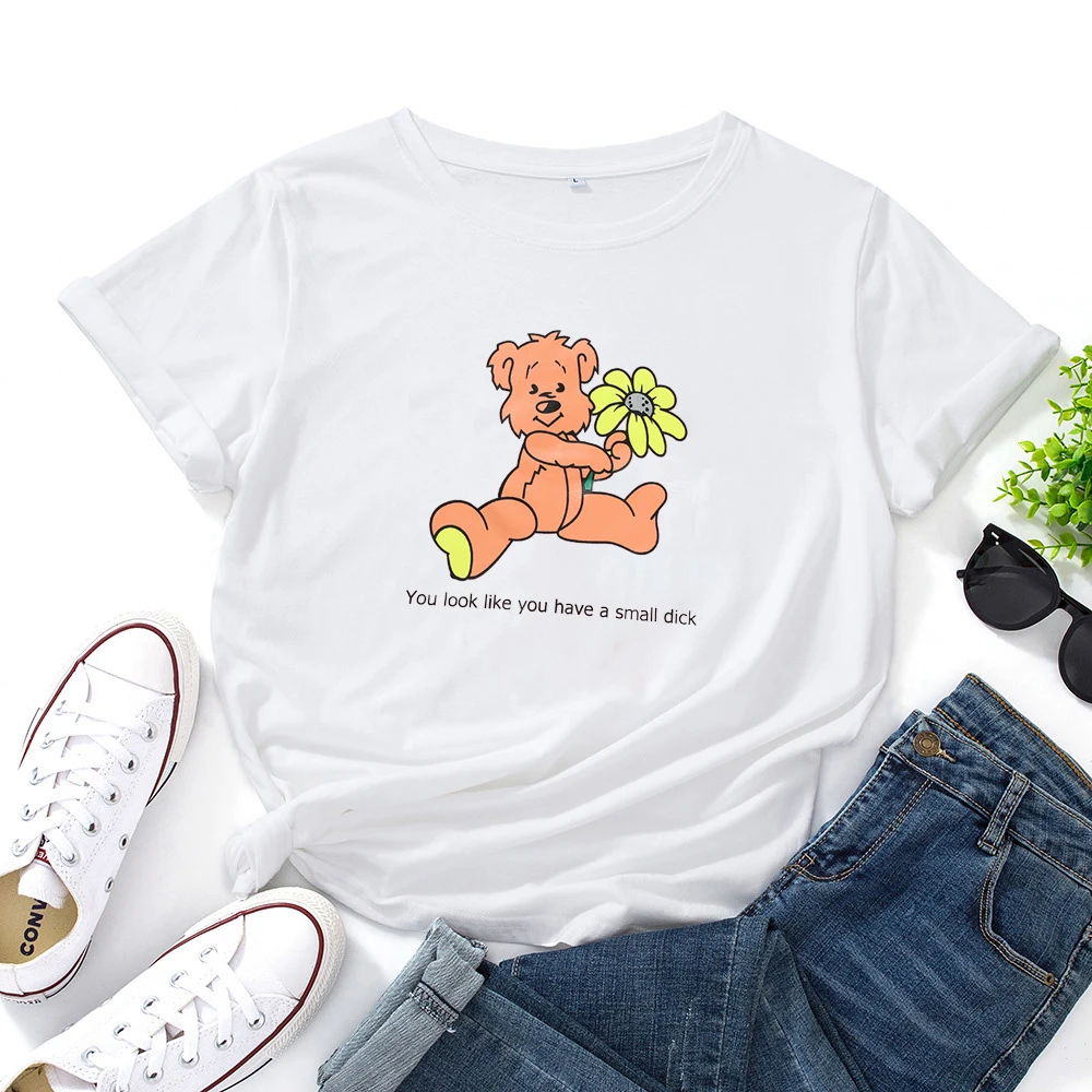 Вы выглядите как у вас есть небольшой член, принт с героями мультфильмов, женская футболка Женская мода футболка хлопок, свободный покрой, круглый вырез горловины с оборками женская футболка
