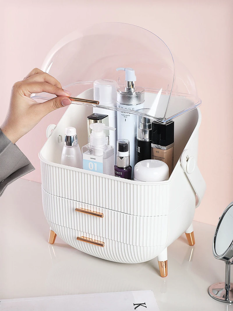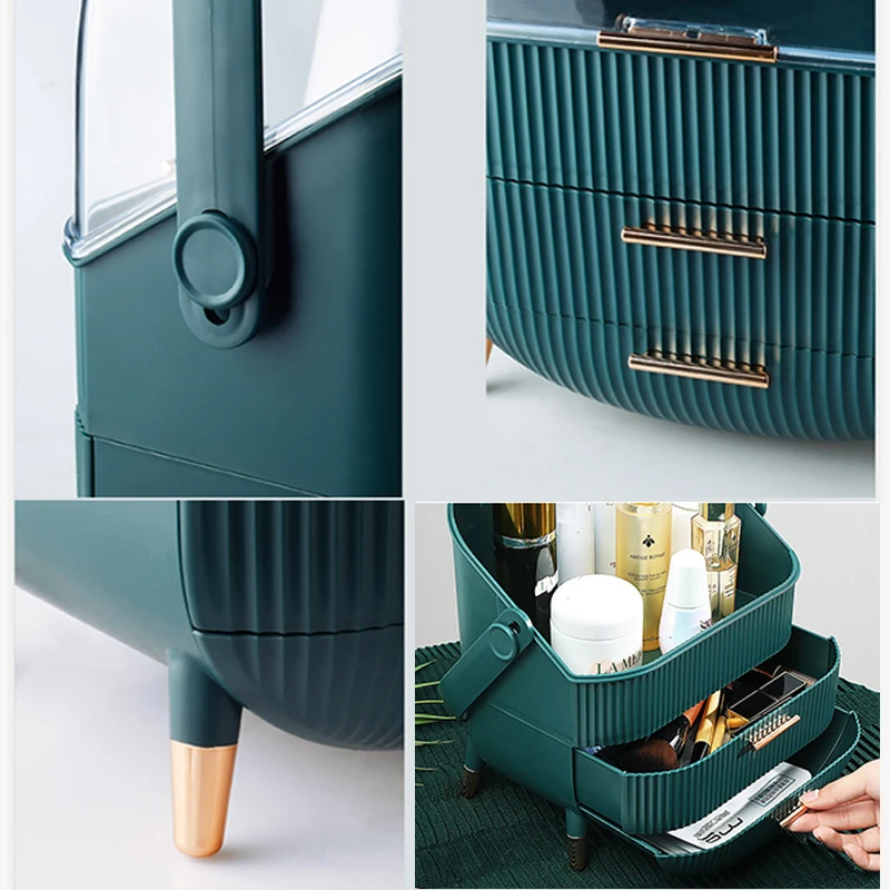 Органайзер для макияжа, вместительная коробка для хранения косметики с ящиком, портативная столешница для ванной, чехол для макияжа